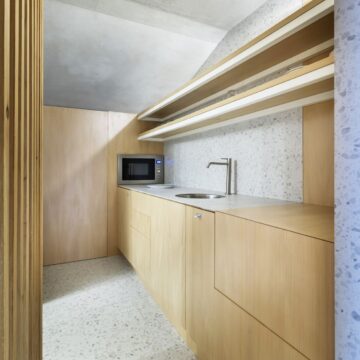 Inside, a few elements define the different functional areas in a fluid way, the living and sleeping areas are filtered by furniture elements and sliding panels.