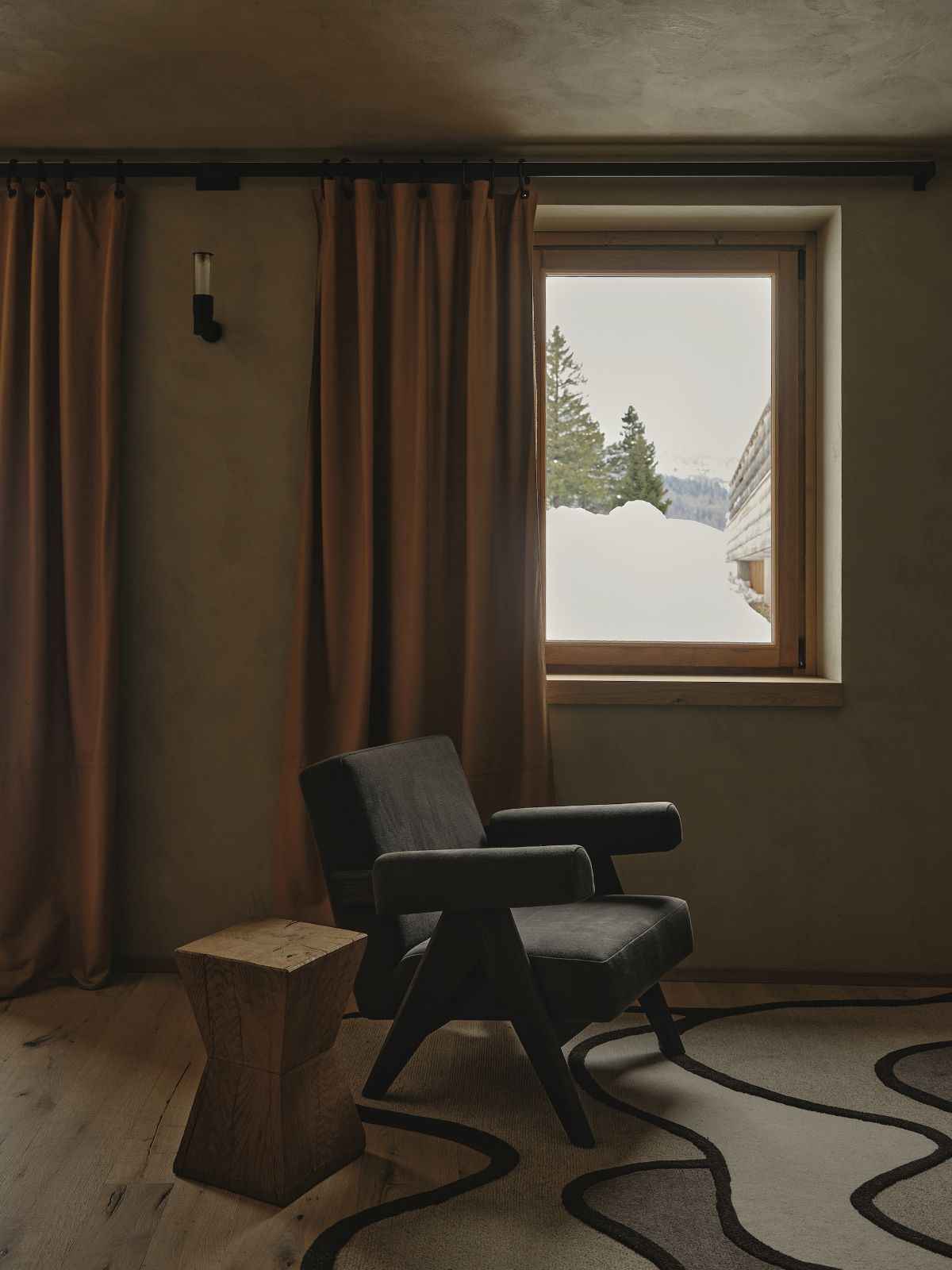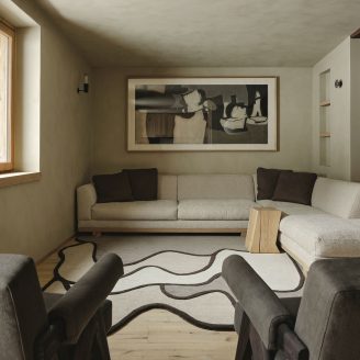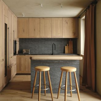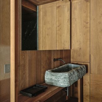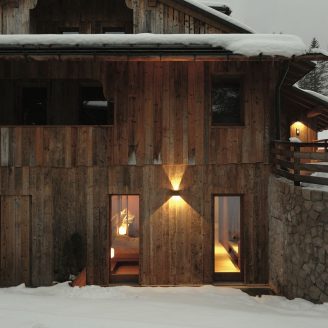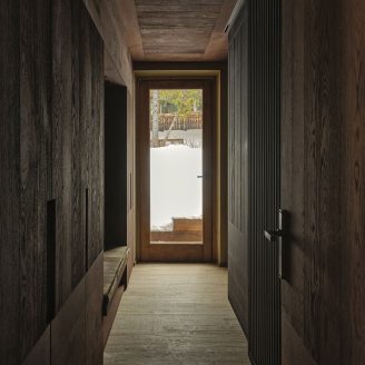 The interior design, which spans two levels, stems from the desire to create a warm and welcoming mountain atmosphere. The main objective was the realization of a home designed around the family, marked by warmth and hospitality. This is achieved through the well-balanced juxtaposition of traditional reminiscences and a contemporary language, where the exaltation of the genius loci meets a timeless taste.