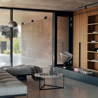 Finally, the abacus of materials is deliberately limited to reinforce the project concept: glass, wood and a particular reddish hue of the concrete, all connected with the Venetian terrazzo flooring. The result is a house with a well-defined identity, where the architecture makes a strong contribution to the enhancement of the available space in this area of the province of Padua.