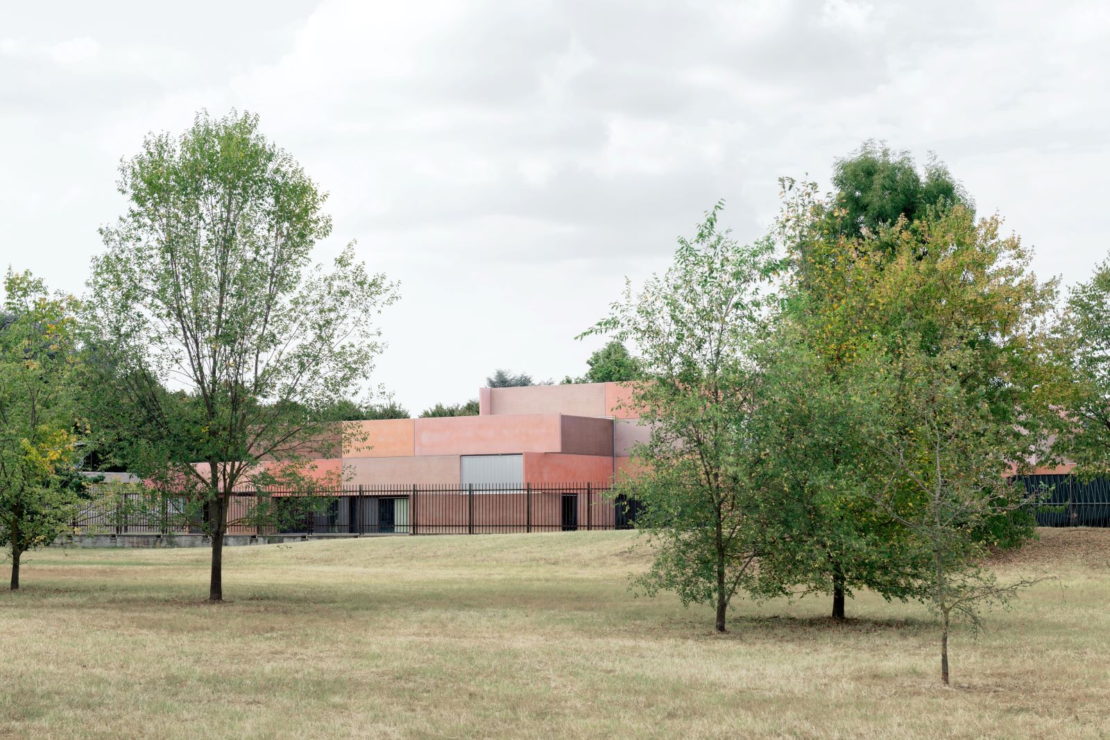 The arrangement in different volumes relates more coherently with the existing office building, to which it is connected through a glass corridor, and with the Colonnetti Park to the southeast, an important naturalistic filter between the dense Mirafiori district and the area along the banks of the Sangone river.