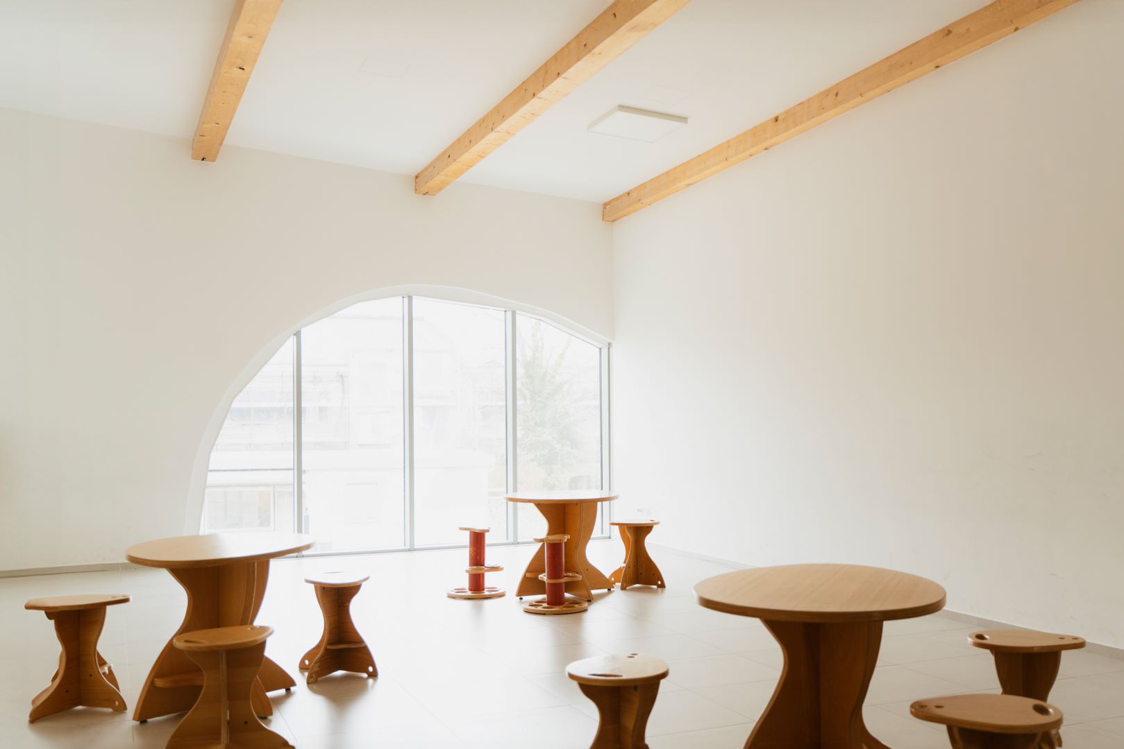 Imagined as a large cetacean, the school shows two levels above ground housing 8 classrooms, a canteen, a teachers’ room and a multifunctional connective area with spaces dedicated to socializing and individual study.