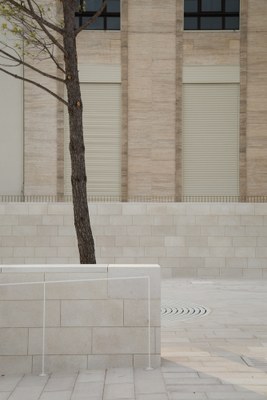 The historic and listed buildings of the Venice Cinema Festival Palace and the Casino Palace have been connected with a white, continuous stone-made public space, which aims to enhance the dimension of the former historic public domain and bring back the memory of the splendour of the Belle Epoque; the square is heightened from the original level to allow the view of the sea and is entirely designed using the monochrome Apricena stone, which underlines the strengths of the dimension of the public space.