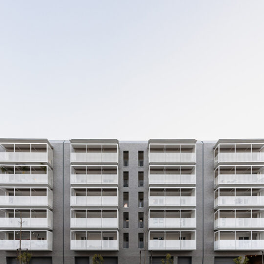 “The project, conceived as the ‘zero point’ of a general redevelopment of this part of the city, breaks away from the typical forms of social housing construction,” explains Massimo Alvisi, co-founder of the studio. “We were interested in working on the typology and quality of the spaces, not only on the design. To balance the gravity of the volume, whose profile on the ground floor bends to expand the public space, we imagined a series of light and permeable loggias hanging on the facade, ‘democratically’ attributing extra space to everyone. The loggias project outwards, as a natural extension of the apartments. What’s more, thanks to their white and perforated surfaces, they reflect natural light within the domestic environment, and they add a further 10 to 15 m2 to the apartments, enhancing the spatial quality of the more modest and limited typological cuts”.