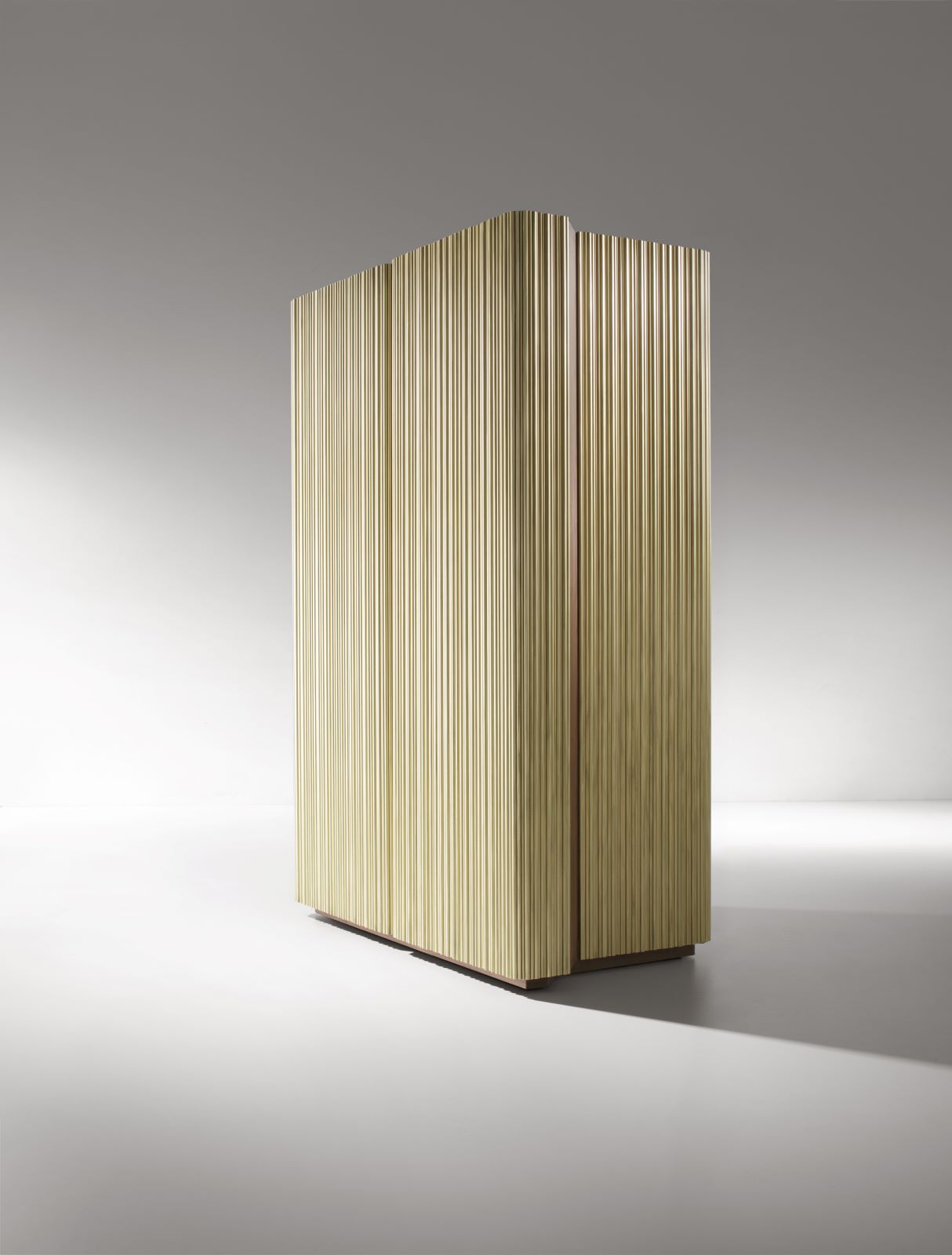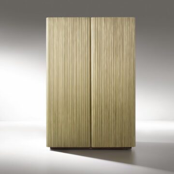 Started with the Barista mobile bar, today the Canneto Collection designed by Adriano Design for De Castelli expands with a console and cabinet. In every piece of furniture, the sculptural surface is defined by fluting composed of vertical rods of different diameters in brushed metal, creating irregular undulations and a fascinating interplay of reflections.