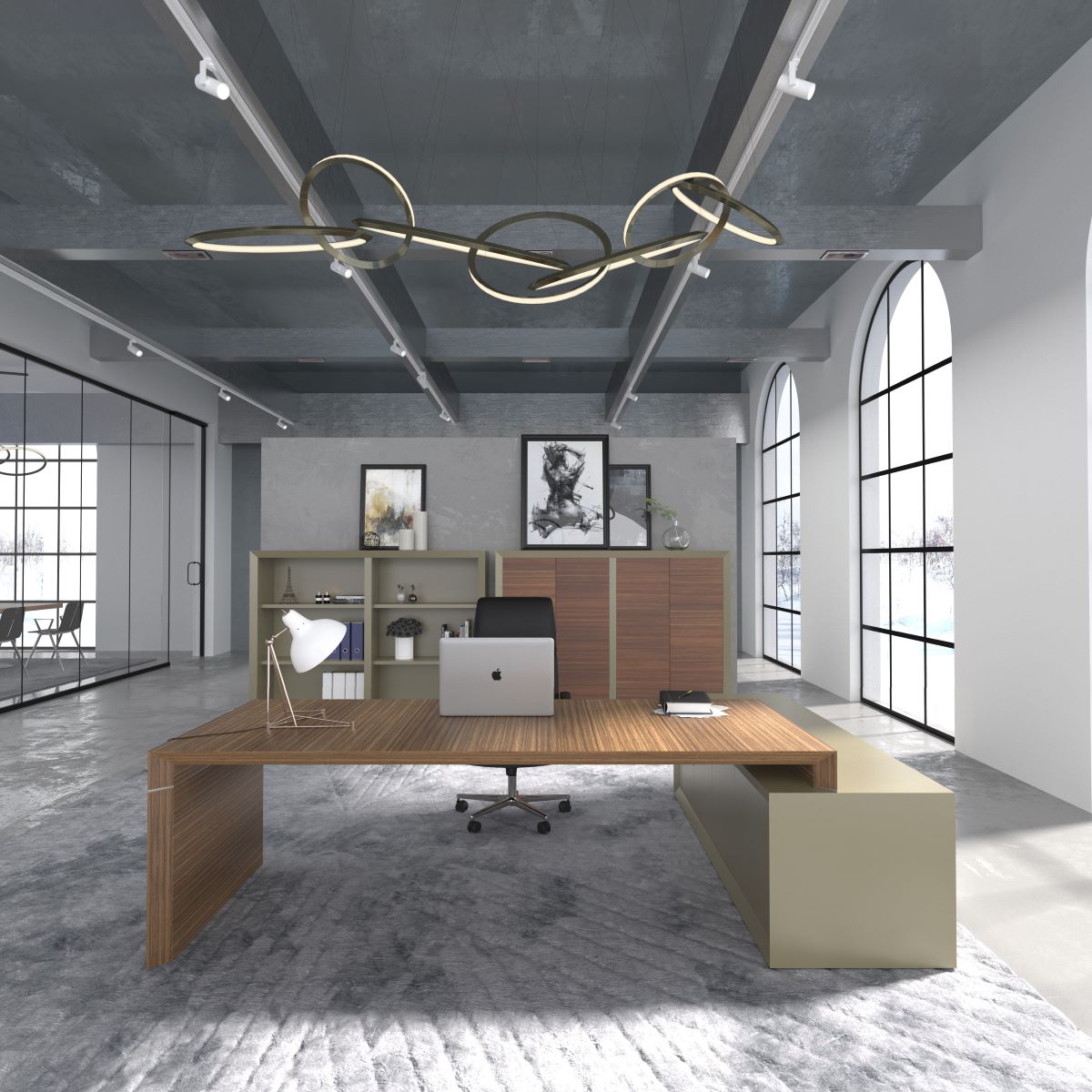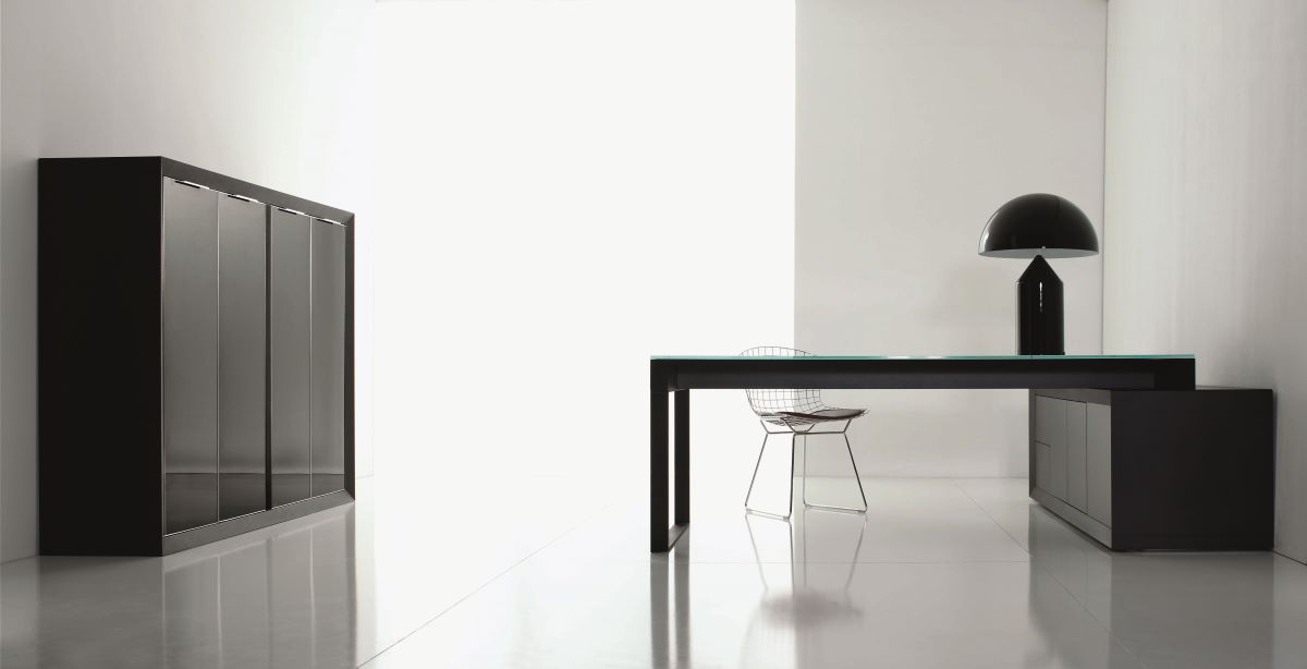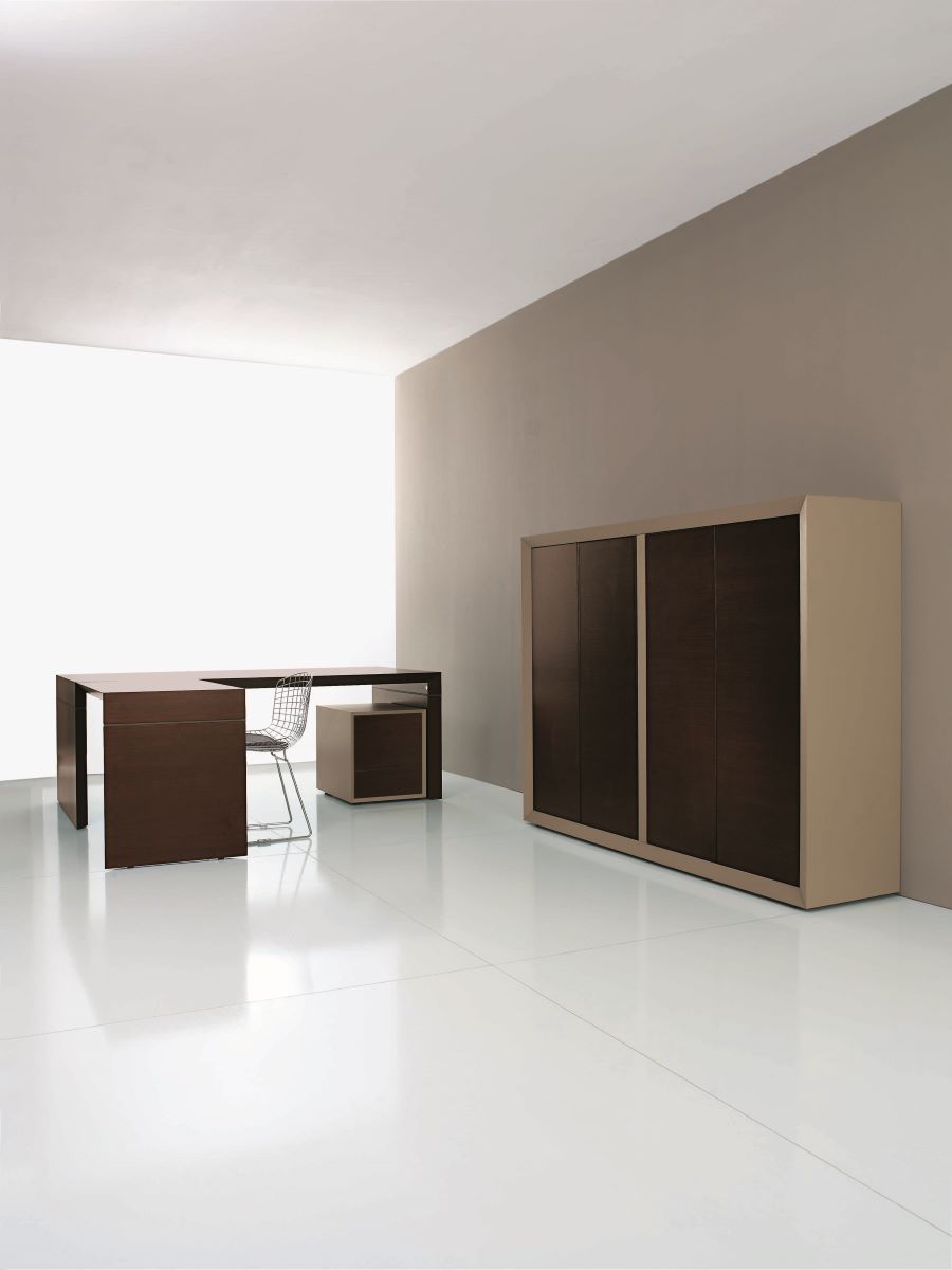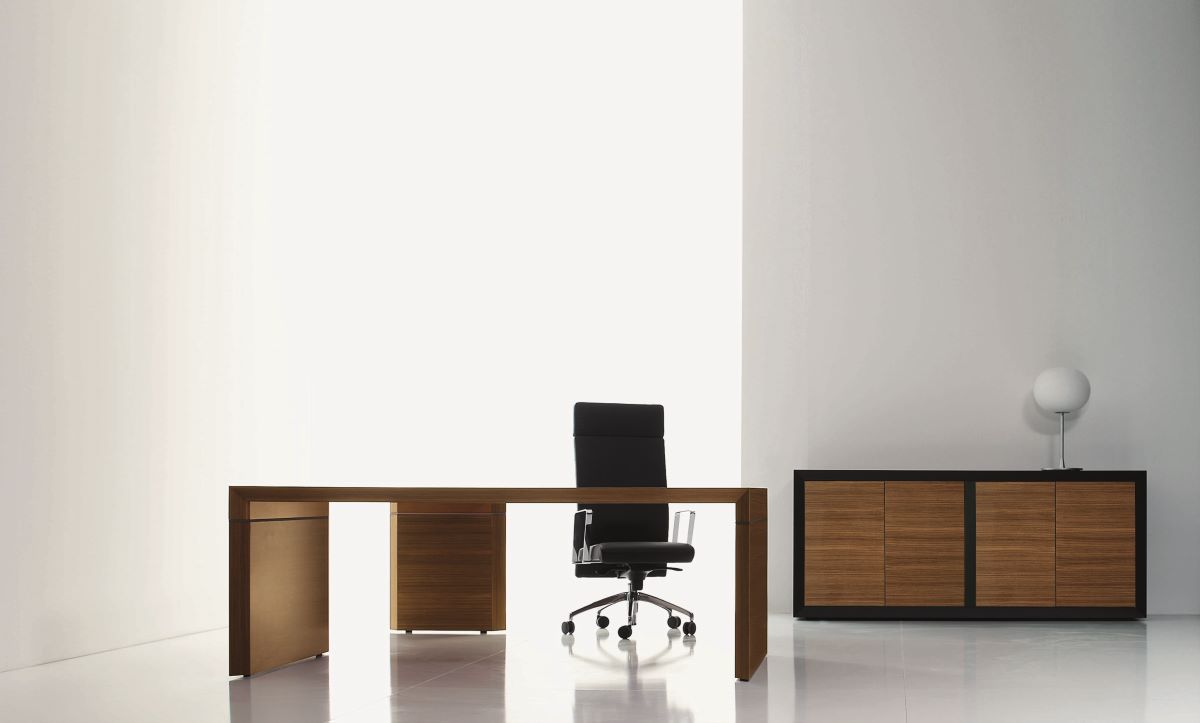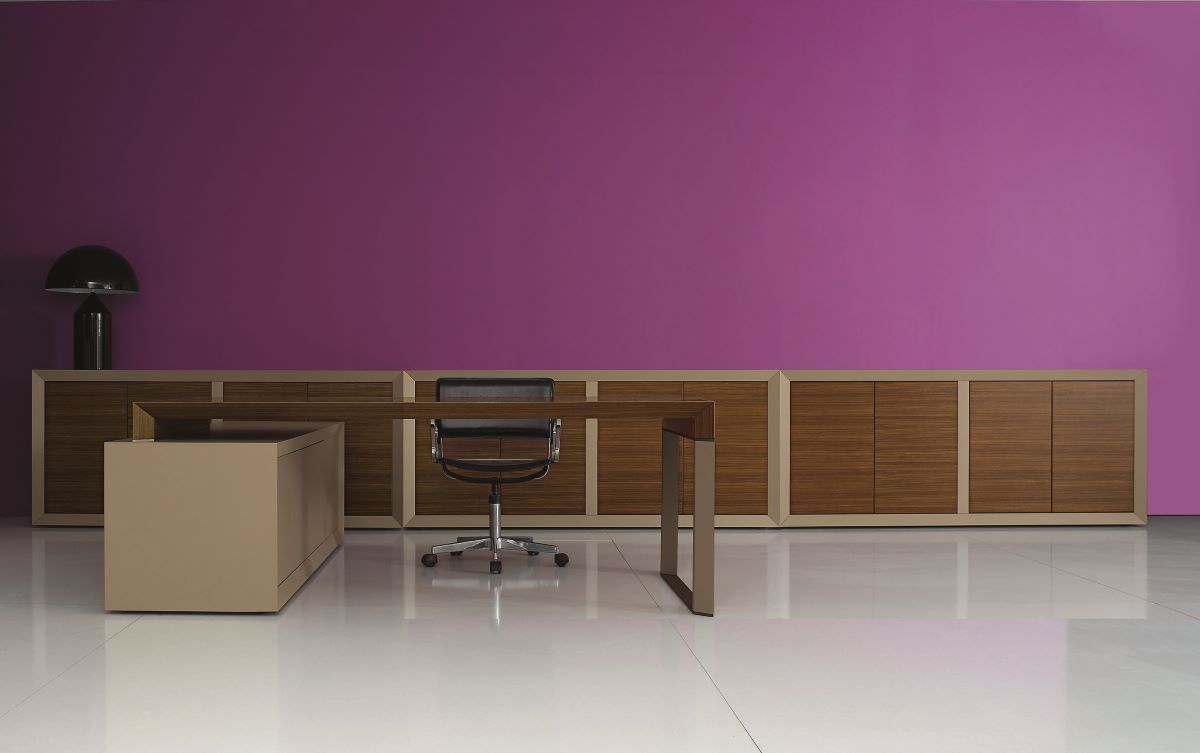 Canaletto walnut and wenge are the available finishes for desktops, service unit tops and other complements – expression of a discreet luxury, of a refined style, ideal for executive offices.
