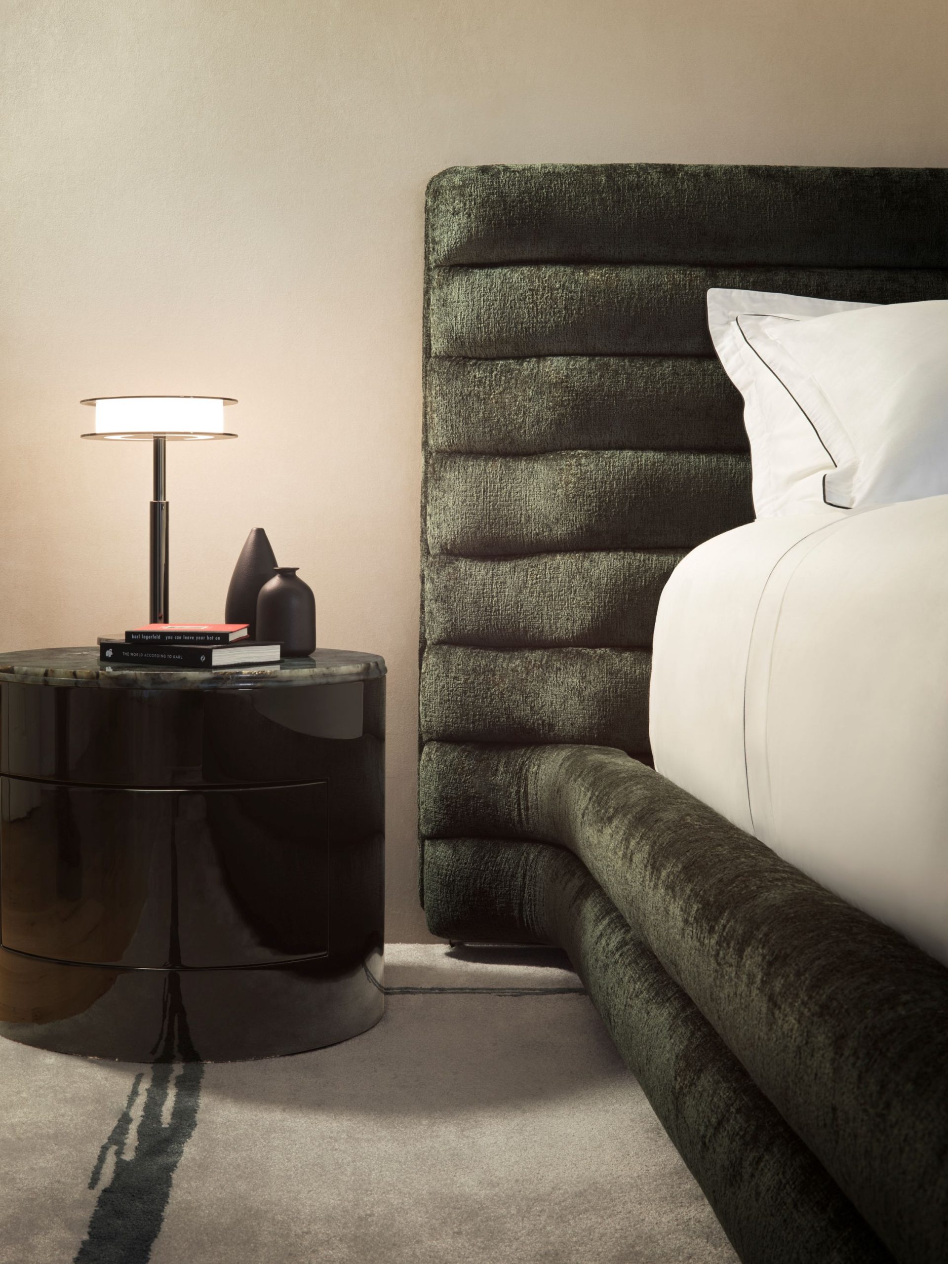 With Wellen, Karl Lagerfeld Maison celebrates the art of rest: the collection’s bed, nightstands, and chaise longue are designed to transform the bedroom into a haven of tranquility and style, combining comfort, design and craftsmanship.
