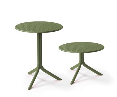 As smart, practical and contemporary furnishings, Spritz and Step come in the standard version with a height of 76.5 cm (Ø 60.5 cm) and a mini version with a height of 40 cm (Ø 60.5 cm); in addition, with their distinctive seductive design and structural ambivalence, they prove to be enjoyably eclectic, comfortable and ideal for embellishing open air settings, but also perfect for indoor use.
