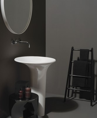 Beginning from five display windows that all have the same scenic backdrop in powder-pink shades, the products are exhibited in a clear and simple way based on an incisive, sophisticated visual communication strategy in which the most recent innovations – such as the WaterCandy handshower – stand out alongside timeless icons that have won prestigious international awards – such as the Lab03 washbasin or the Morphing bathtub.