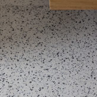 The kitchen, enhanced by a modern atmosphere, is equipped with a central island with a marble conglomerate top which offers an elegant contrast with the elements of the black kitchen with a cement effect. A closing panel of the kitchen integrates the passage to the foyer room, obtained from the original corridor.