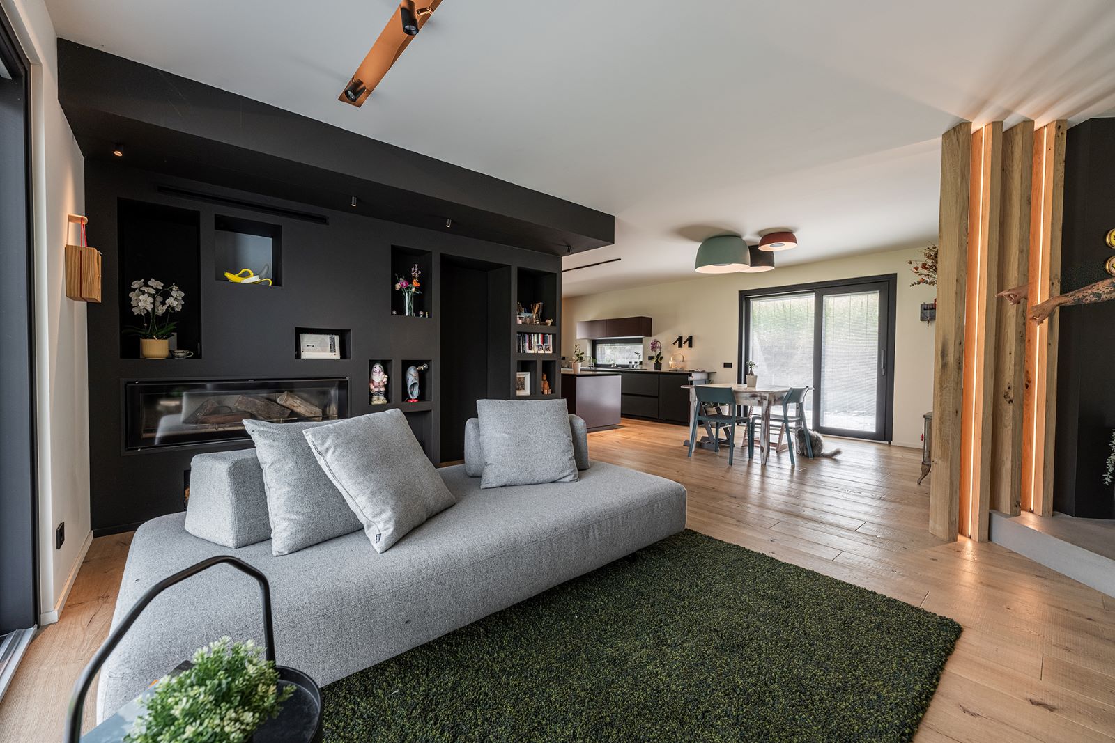 Environmental sustainability was another important element for Zaffuto in the implementation of Zaffhaus, starting from the main protagonist, the material, namely the DS.19 PREFA shingles made of secondary aluminium, 100% recyclable without compromising the quality. Another significant aspect is the energy efficiency: with the installation of 18 photovoltaic panels, for a total of 7KW with storage batteries, mounted on the roof with the PREFA fixing brackets, the house is 80% self-sufficient in terms of energy; together with the heat pump heating system, there is a wood-burning stove, which also aims to recall the traditional approach of this modernist villa.