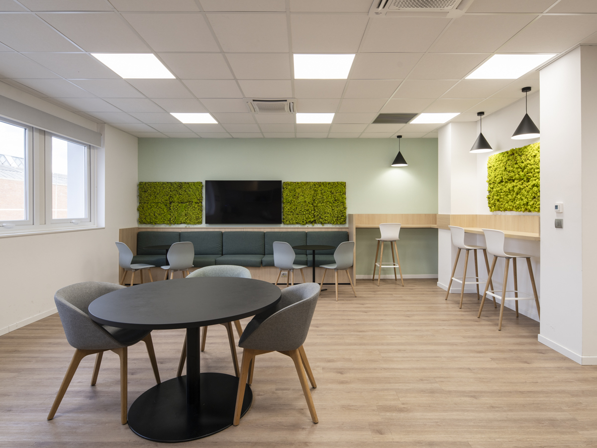 DEGW si è occupata della riqualificazione di tutti e nove gli edifici del sito: quattro sono stati sopraelevati di un piano e collegati tramite delle tettoie, dando vita così a nuove piazze coperte, mentre gli altri cinque sono stati oggetto di un restyling interno, con un passaggio netto da uffici tradizionali a open space flessibili, ambienti ibridi, spazi meeting formali e informali e postazioni in condivisione.