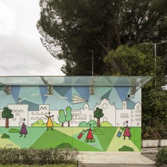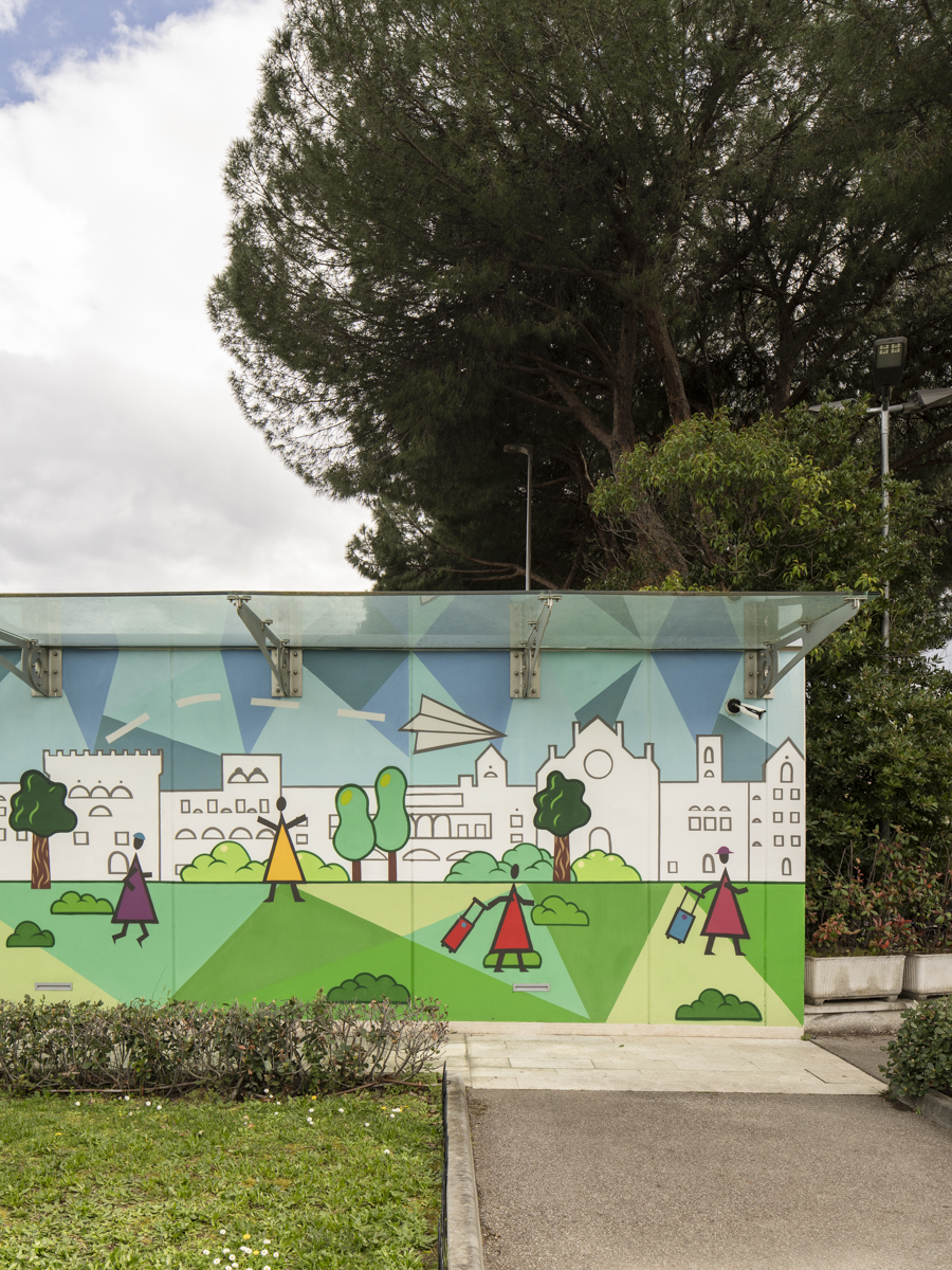 L’area del parcheggio esterna, invece, è diventata una piazza pedonale, arricchita da arredi urbani e da un murales realizzato da Artlane, collettivo di Lombardini22, in collaborazione con studenti del Liceo Artistico di Firenze, a sottolineare il dialogo con la città e il territorio.