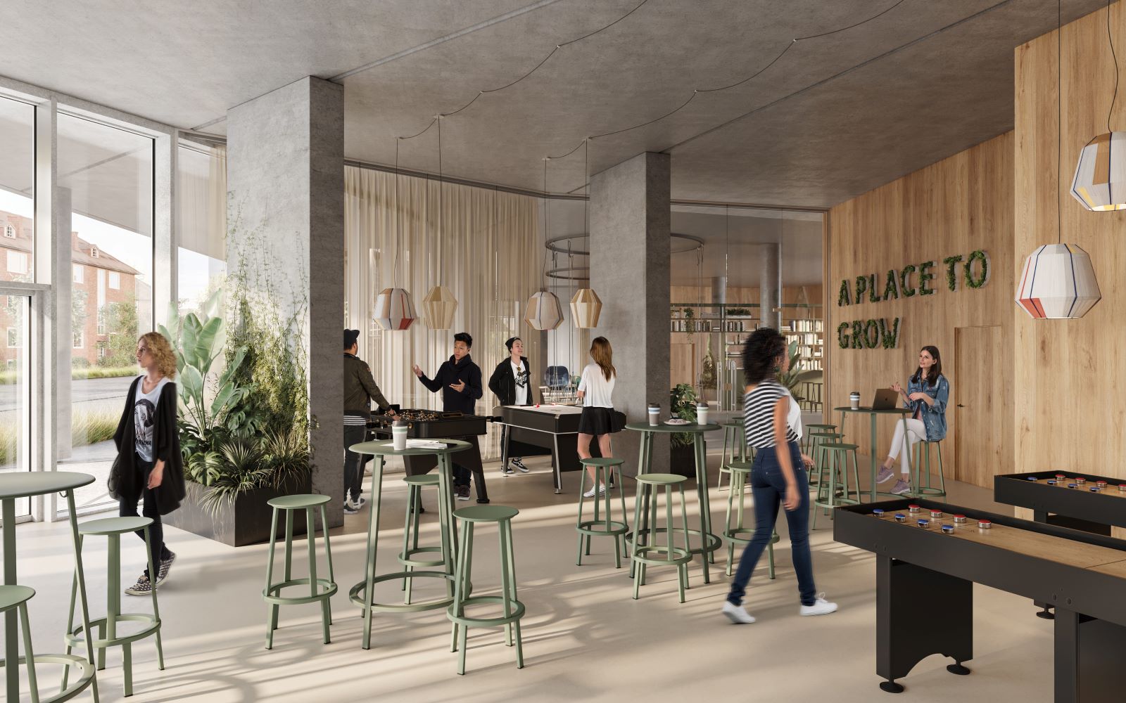 A Place To Esbjerg includerà poi una serie di spazi sociali informali, oltre a uno sky-bar/caffè e a un ristorante gestito da dalla blasonata coppia Marie e Michael Rønnebæk-Rørth, già affermatisi con la loro cucina nel quartiere Nordhavn di Copenaghen.