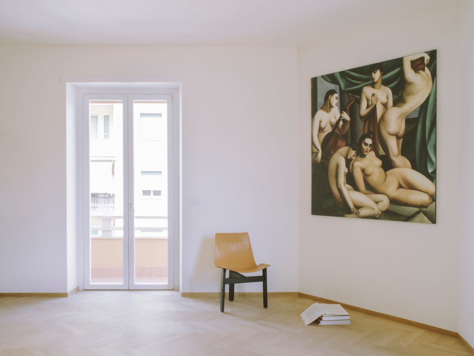 Arredi ispirati allo stile degli anni ’60, acquistati in gran parte in mercatini dell’antiquariato, si mixano a pezzi più ricercati, come le sculture Omaggio a Morandi di Salvatori, la sedia 3T di Mangiarotti, i lampadari Triedri vintage di Venini o le lampade di Pepe Fornas per Aromas del Campo.