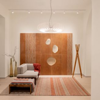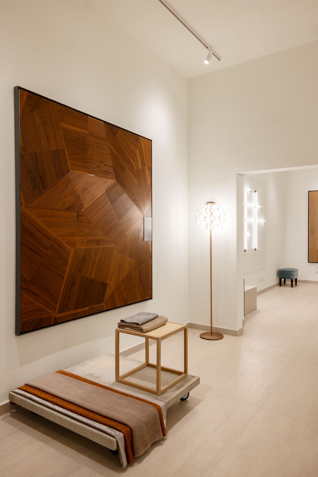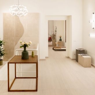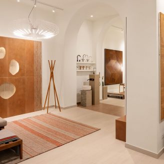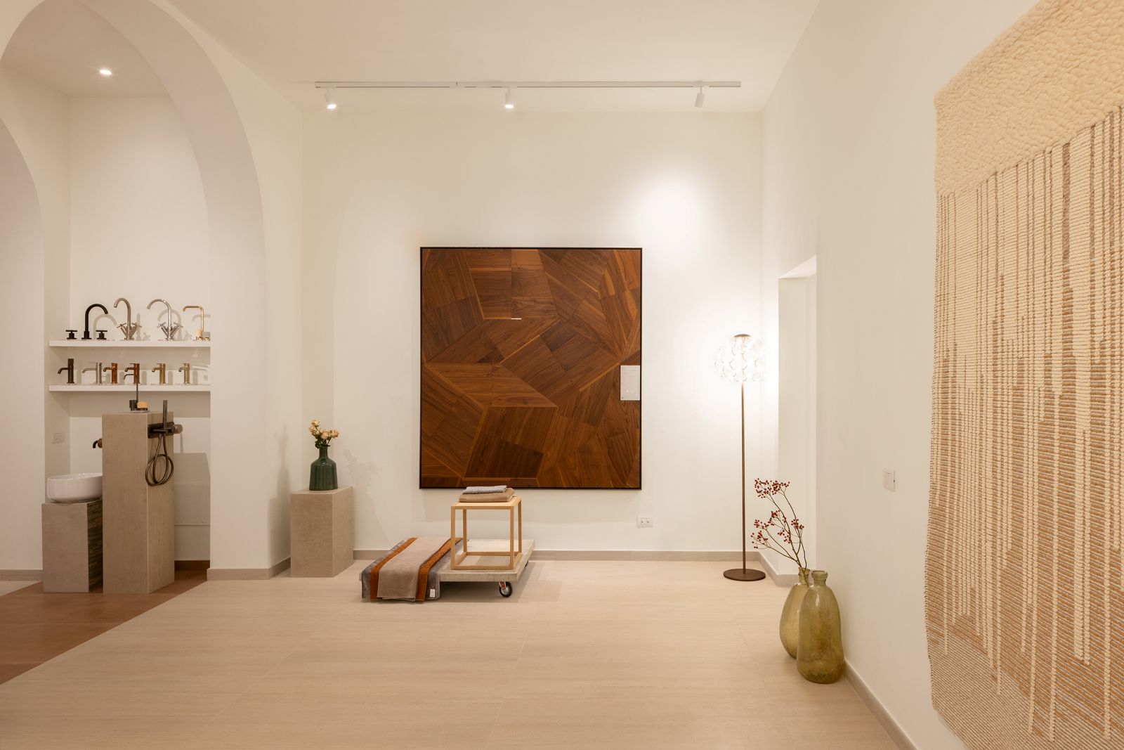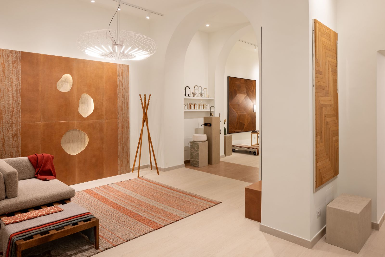 All’interno convivono le eccellenze del Made in Italy: oltre alle ceramiche in gres porcellanato a Km 0 di Abitzai (come la collezione Origini di Celestino Sanna), il percorso include gli arredi ecosostenibili di Plinio il Giovane, i tessuti di Dino Zoli Textile e il legno di Listone Giordano. Completano l’esperienza le luci di Sforzin Illuminazione, i miscelatori di Fima – Carlo Frattini e i tappeti di Mariantonia Urru, che traducono la tradizione sarda in creazioni contemporanee.