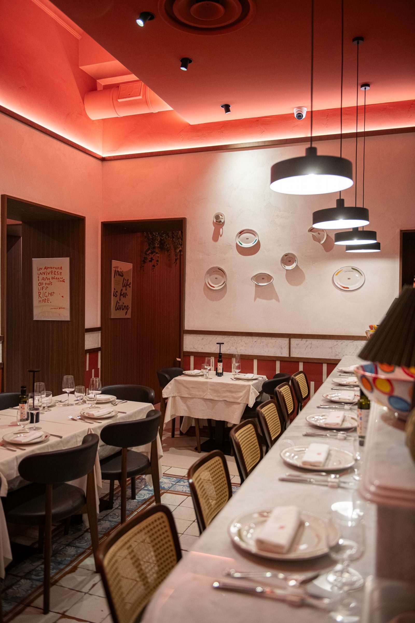 Commissionato dal Gruppo 50 Kalò di Ciro Salvo e Alessandro Guglielmini, lo spazio di seicento metri quadri diventa un ristorante in cui sentirsi come a casa grazie a un’atmosfera domestica e autentica, dove il restauro conservativo dialoga apertamente con la modernità materica. L’intervento preserva infatti con cura l’identità storica dell’edificio, dalle modanature al tufo, integrandola in una narrazione estetica che rifugge l’ostentazione a favore di una raffinata intimità.
