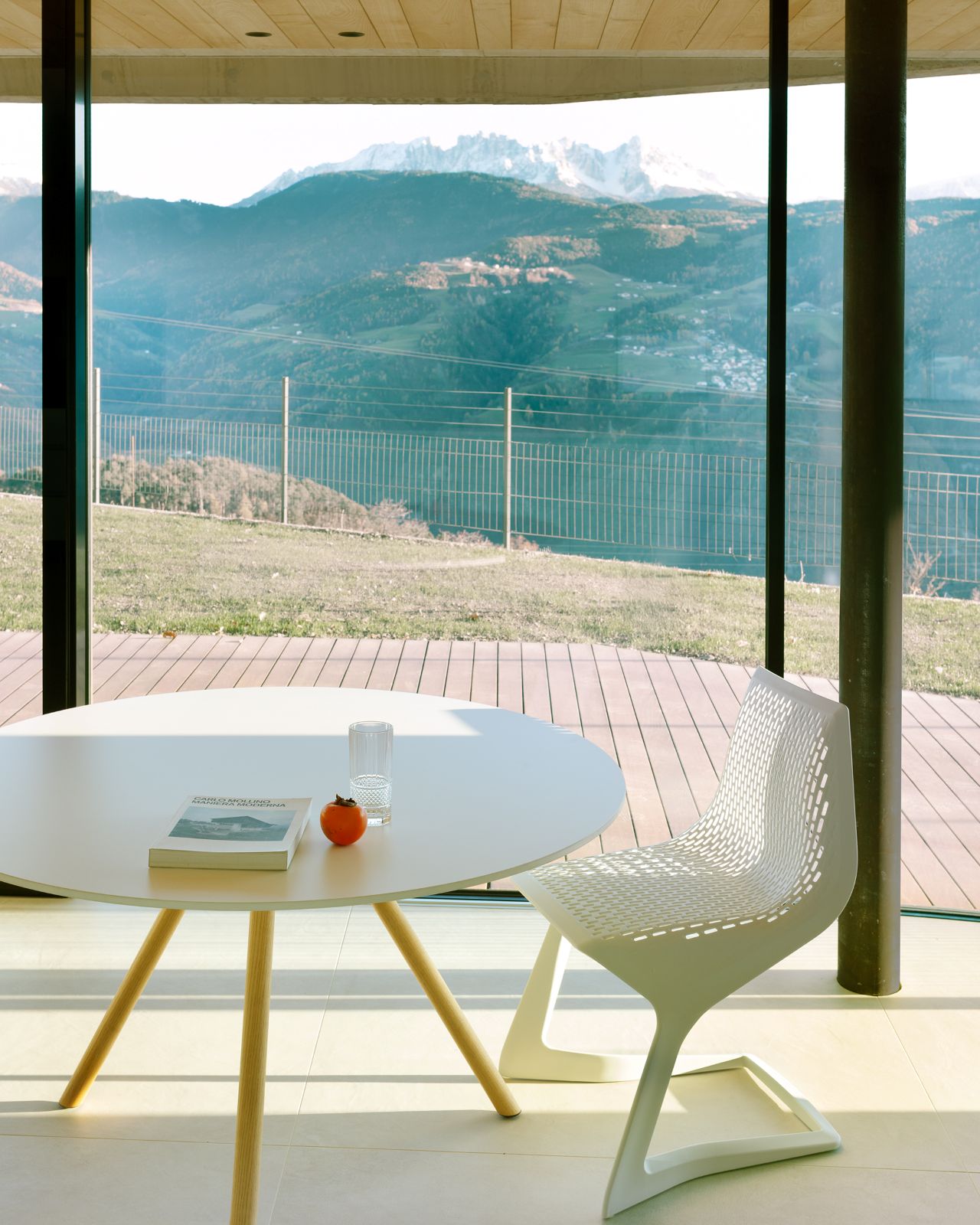 Situata ad Auna di Sotto, sull’altipiano del Renon, a un’altitudine di 990 metri, Casa Conte rappresenta un raffinato intervento di ampliamento di una residenza risalente alla fine degli anni ’70. Il progetto, curato dallo studio Messner Architects, si sviluppa su un pendio esposto a sud, dove il nuovo volume è stato strategicamente posizionato al di sotto dell’edificio esistente, in corrispondenza di un muro di sostegno preesistente, per aprirsi verso una vista libera sulle Dolomiti.