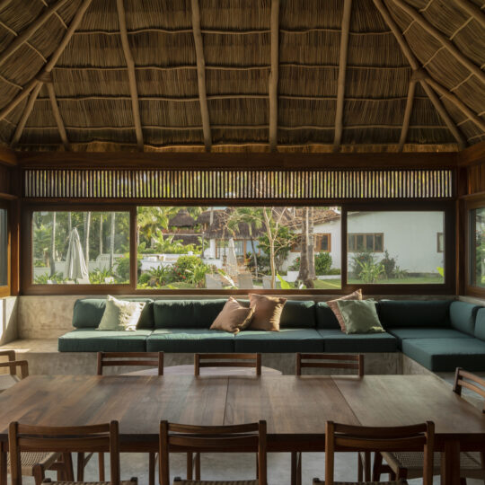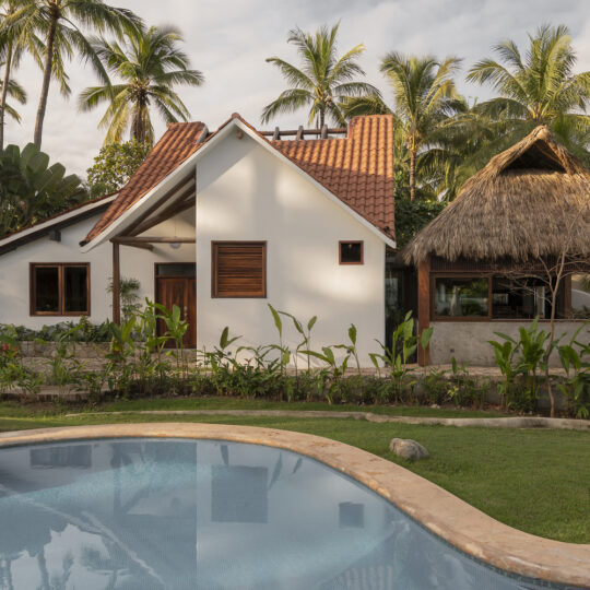 La copertura del nuovo volume è una palapa, una costruzione caratteristica delle zone costiere del Messico basata su una struttura in legno ricoperta di foglie di palma; inoltre, il volume nuovo si apre da un lato verso il cortile interno della casa e dall’altro verso una terrazza che intensifica la relazione con l’ambiente circostante.