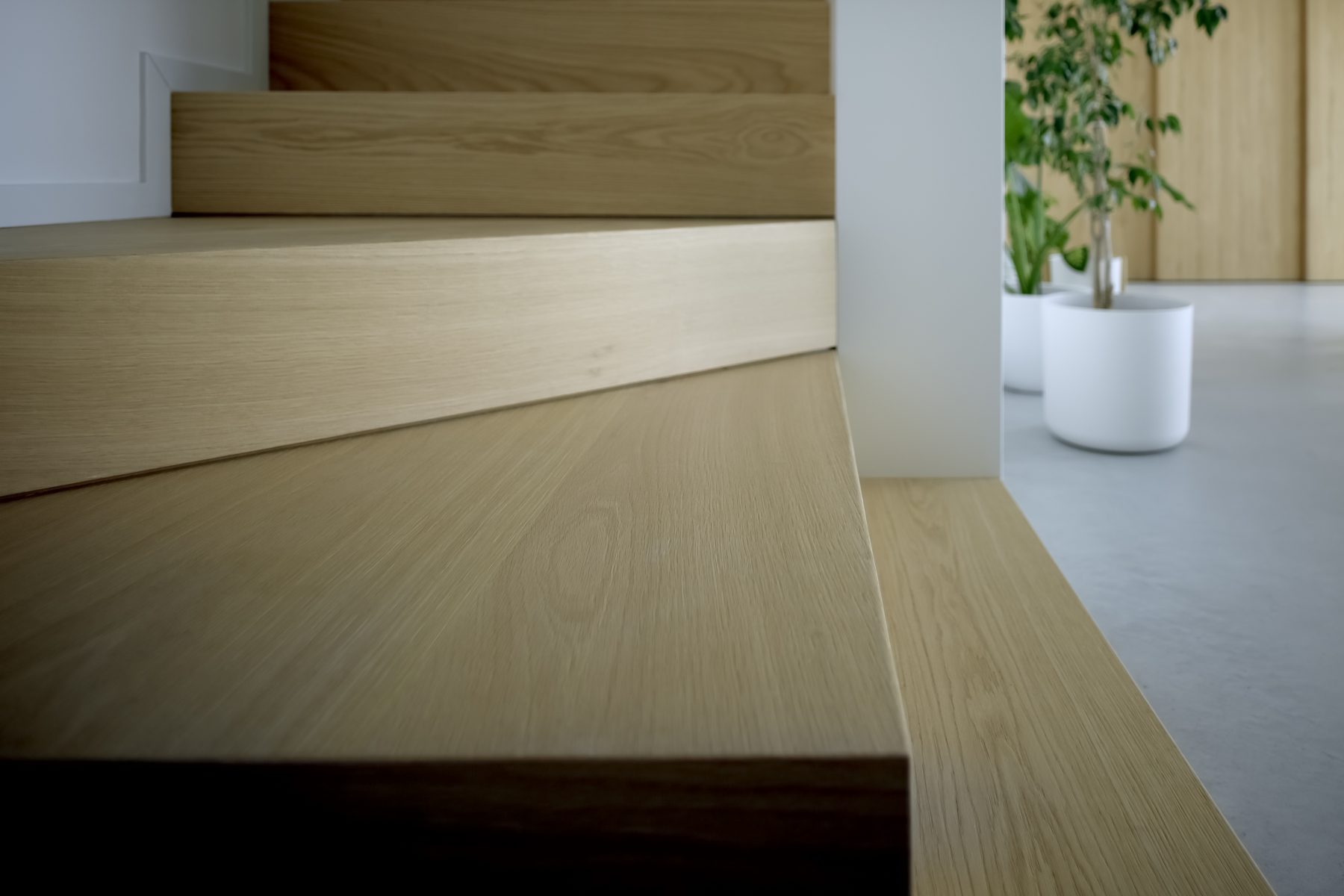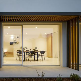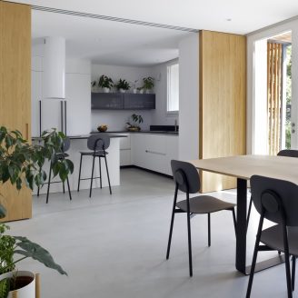 Mentre la dimensione più riservata e dedicata al riposo è stata strategicamente collocata al piano superiore, l’intera zona domestica e conviviale trova la sua massima espressione al piano terra. Qui, l’architettura si manifesta attraverso un linguaggio essenziale, intriso di luce naturale, trasparenze ed elementi in legno naturale, che contribuiscono a costruire un’atmosfera sobria ma accogliente.