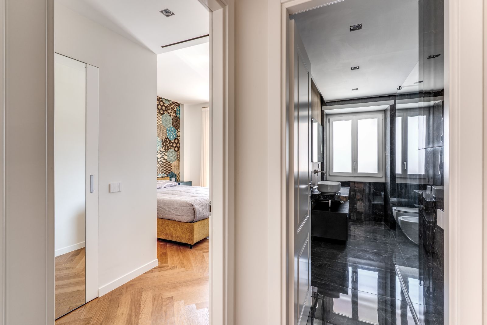 L’intervento architettonico infatti si muove con precisione tra la necessità di creare ambienti fluidi e la volontà di mantenere un’estetica sobria e senza tempo, dove ogni scelta materica concorre a una narrazione visiva coerente.