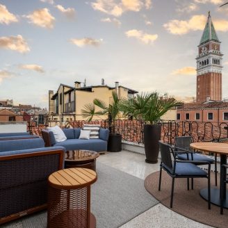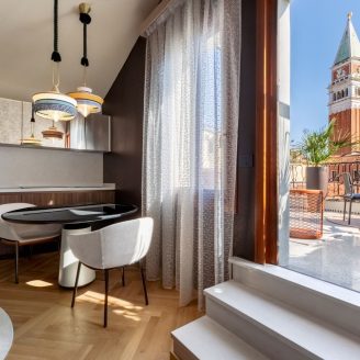 Gli interni raccontano l’identità di Venezia attraverso scelte che la reinterpretano in chiave contemporanea.