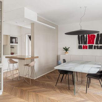 A pochi passi dall’Appia Nuova si trova un appartamento signorile recentemente ristrutturato dallo studio di architettura IRORI Interiors dove il legno è il grande protagonista.