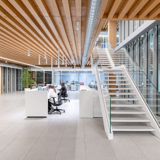 Il progetto ha riposto poi notevole attenzione al comfort degli ambienti interni, al conseguente benessere del personale e alla permeabilità della luce naturale, grazie all’introduzione di grandi trasparenze verso l’esterno e affacci su una corte interna arricchita da essenze arboree e arbustive.