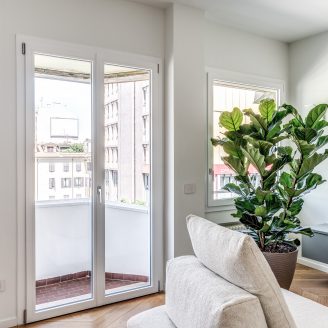 Un elemento cruciale del progetto è stato l’isolamento acustico, essenziale per proteggere l’abitazione dai rumori esterni della città, vista anche la sua posizione centrale. A questo scopo sono stati installati nuovi infissi in PVC Prolux Evolution di Oknoplast dal design pulito e contemporaneo, capaci di garantire un’ottima efficienza termica e di incrementare del 22% l’ingresso della luce naturale. Le ampie superfici vetrate, caratterizzate da linee essenziali e da un’elevata trasparenza, hanno contribuito quindi a creare un dialogo armonioso tra interni ed esterni.