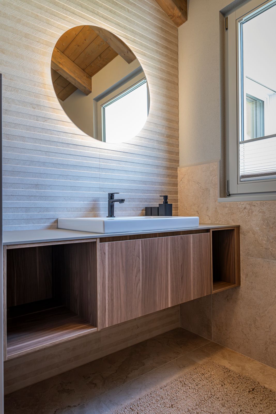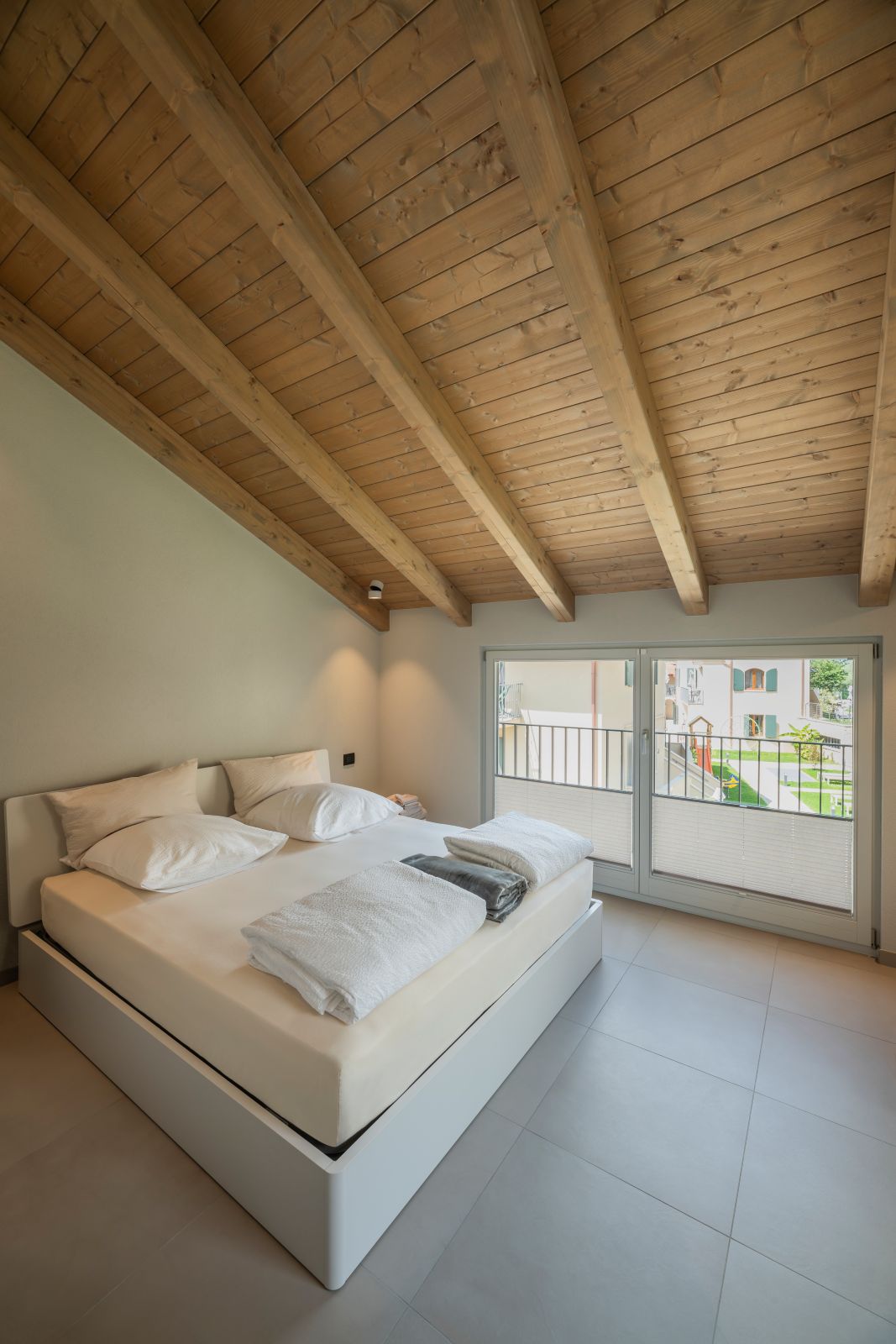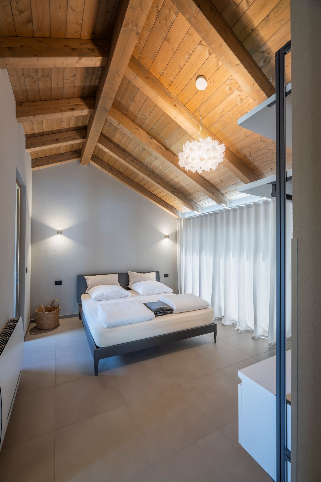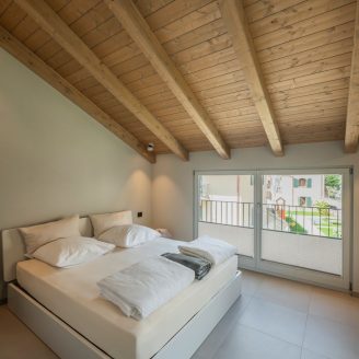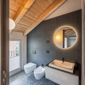 L’adozione del sistema costruttivo in legno, inizialmente dettata da vincoli temporali legati alla stagionalità dei cantieri sul lago, è divenuta l’essenza stessa del manufatto. Attraverso l’expertise tecnica di Rubner Haus, l’edificio riesce infatti a preservare le volumetrie e le proporzioni storiche della preesistenza, instaurando un dialogo armonioso con il tessuto del borgo antico. All’interno dell’attico, i rivestimenti lignei creano un’atmosfera calda e raffinata, garantendo al contempo elevati standard di benessere bioclimatico e qualità dell’aria e trasformando così la materia in un vero e proprio strumento di comfort.