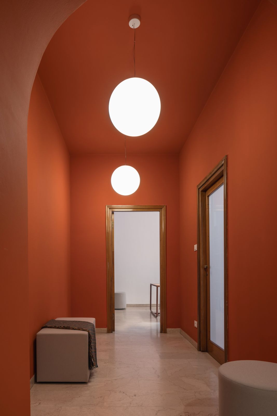 L’elemento cardine dell’intervento è la reinterpretazione dell’archetipo dell’arco, utilizzato in chiave attuale per generare una spazialità fluida ed essenziale, capace di comunicare un senso di profonda umanità fin dal primo impatto. Le geometrie morbide e le prospettive pulite richiamano un’idea di chiarezza che guida ogni scelta progettuale, dal layout alle finiture, modellando uno spazio calmo e luminoso in cui la quotidianità del lavoro contabile diventa più intuitiva e scorrevole.