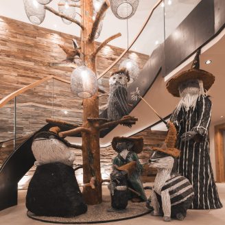 Il piano più alto dell’hotel, invece, ospita un’enorme terrazza panoramica con infinity pool e vasca idromassaggio adults-only. Non mancano poi l’area benessere Family Wellness con molteplici piscine e divertenti scivoli, family sauna e area relax con snack bar e il Magolix Club, un’area riservata ai bambini e ai ragazzi con laboratori del legno e di pittura, sale dedicate al gioco, palestra interna, percorso atletico Ninja-Starrior e parete di arrampicata per le attività sportive. E il divertimento prosegue nell’innovativo sistema di scivoli tubolari che si snodano nel cortile interno e che collegano i vari piani dell’hotel.