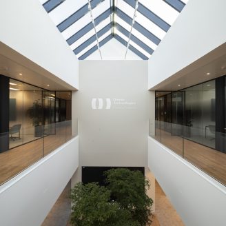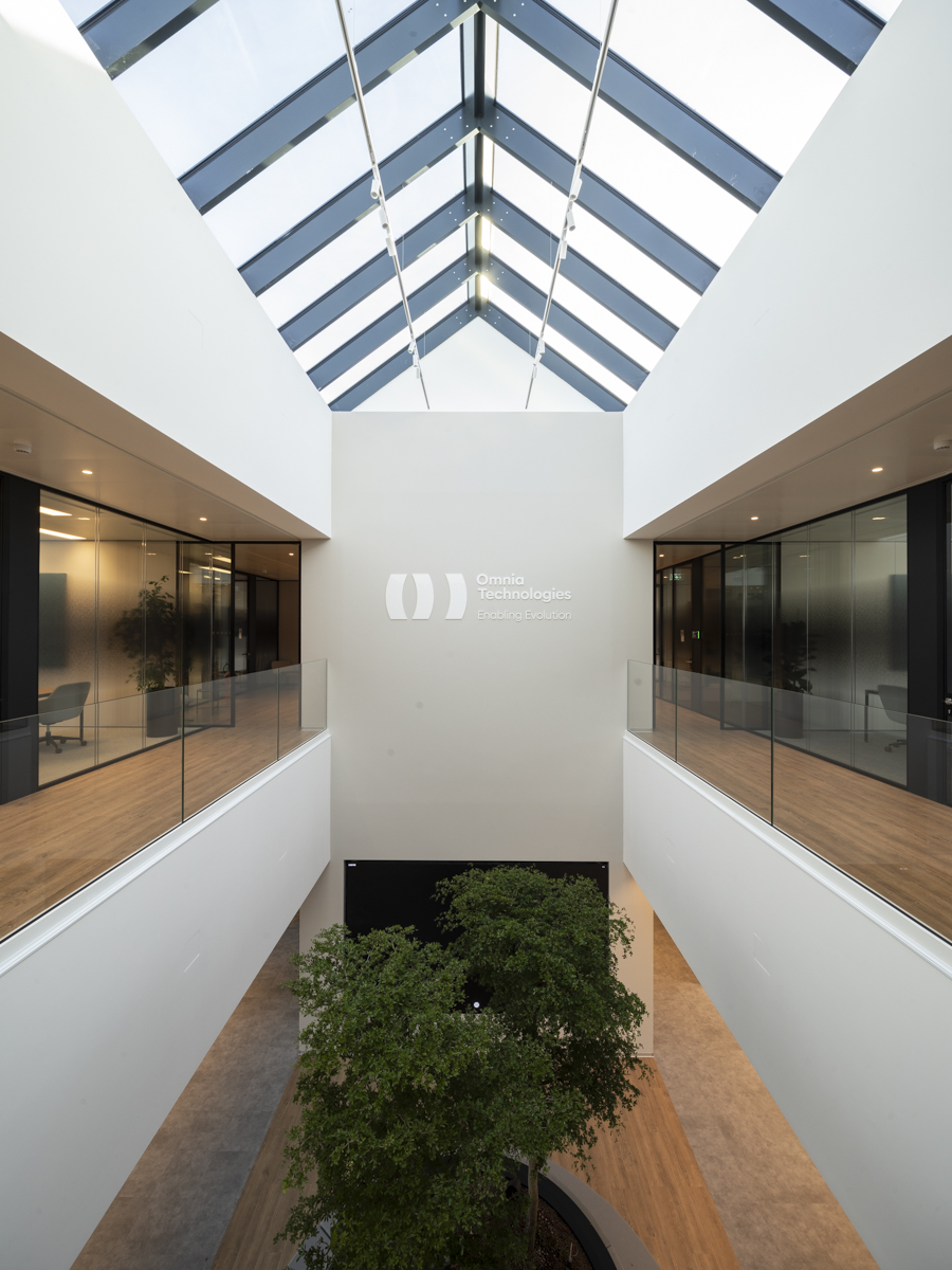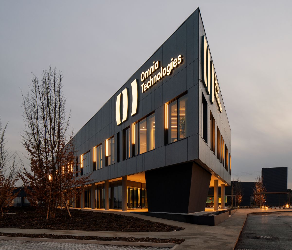 “Grazie al progetto per la nuova sede di Omnia Technologies, abbiamo avuto l’opportunità di sviluppare un vero e proprio punto di convergenza tra diverse dimensioni del lavoro: quella di un moderno ed efficiente organismo direzionale per un gruppo dinamico e in espansione, anche espressa dalla forma saettante dell’edificio; quella del lavoro di fabbrica presente nell’attigua area produttiva, con cui condivide servizi e facilities dedicati ai dipendenti; e quella del rapporto con il paesaggio esterno, cui il complesso si rivolge con un’immagine incisiva ma anche discreta che dà al Gruppo una concreta identità nell’ambiente circostante”, ha dichiarato Alessandro Adamo, Partner Lombardini22.