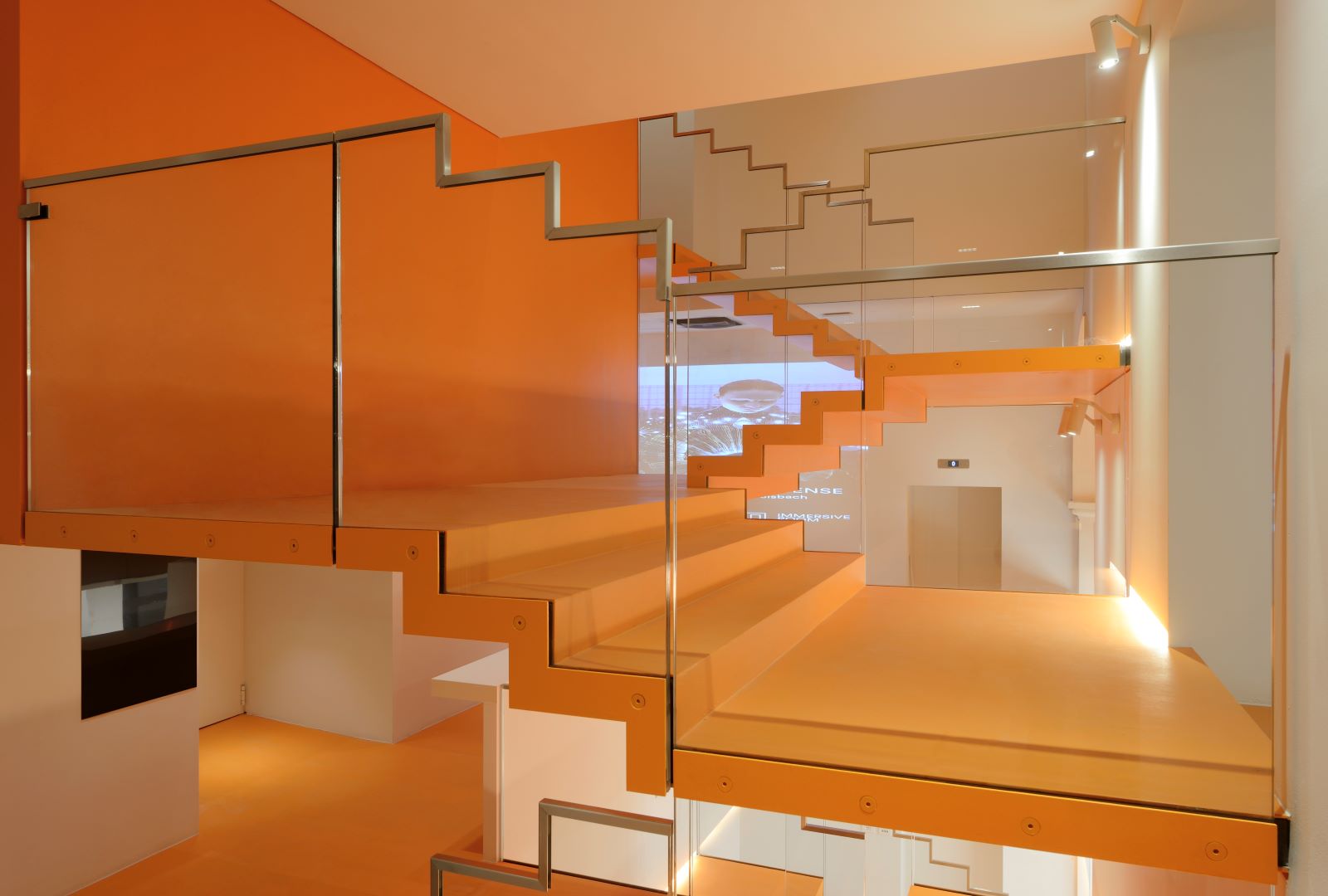 Lo spazio pubblico verticale – la “scala abitata” – al centro dell’edificio sintetizza proprio questo approccio: tutto intorno a delle rampe che si muovono in una sequenza di linee spezzate, i visitatori possono sostare su diversi interpiani asimmetrici, arricchiti da un sistema di proiezioni multimediali; questi spazi, i quali possono essere impiegati per conferenze, installazioni o mostre, incoraggiano soprattutto incontri casuali lungo il percorso dell’edificio.