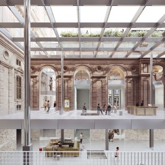 In aggiunta, una tettoia trasparente, sostenuta da prolungamenti delle colonne esistenti, viene installata sopra la Piazza Egizia per creare un ambiente temperato. La griglia strutturale in acciaio rivestita in alluminio della tettoia – definita dal ritmo regolare della facciata del Collegio dei Nobili – è anche un dispositivo per la raccolta dell’acqua piovana, la ventilazione dell’aria e l’illuminazione, in sintonia con i nuovi standard di sostenibilità.