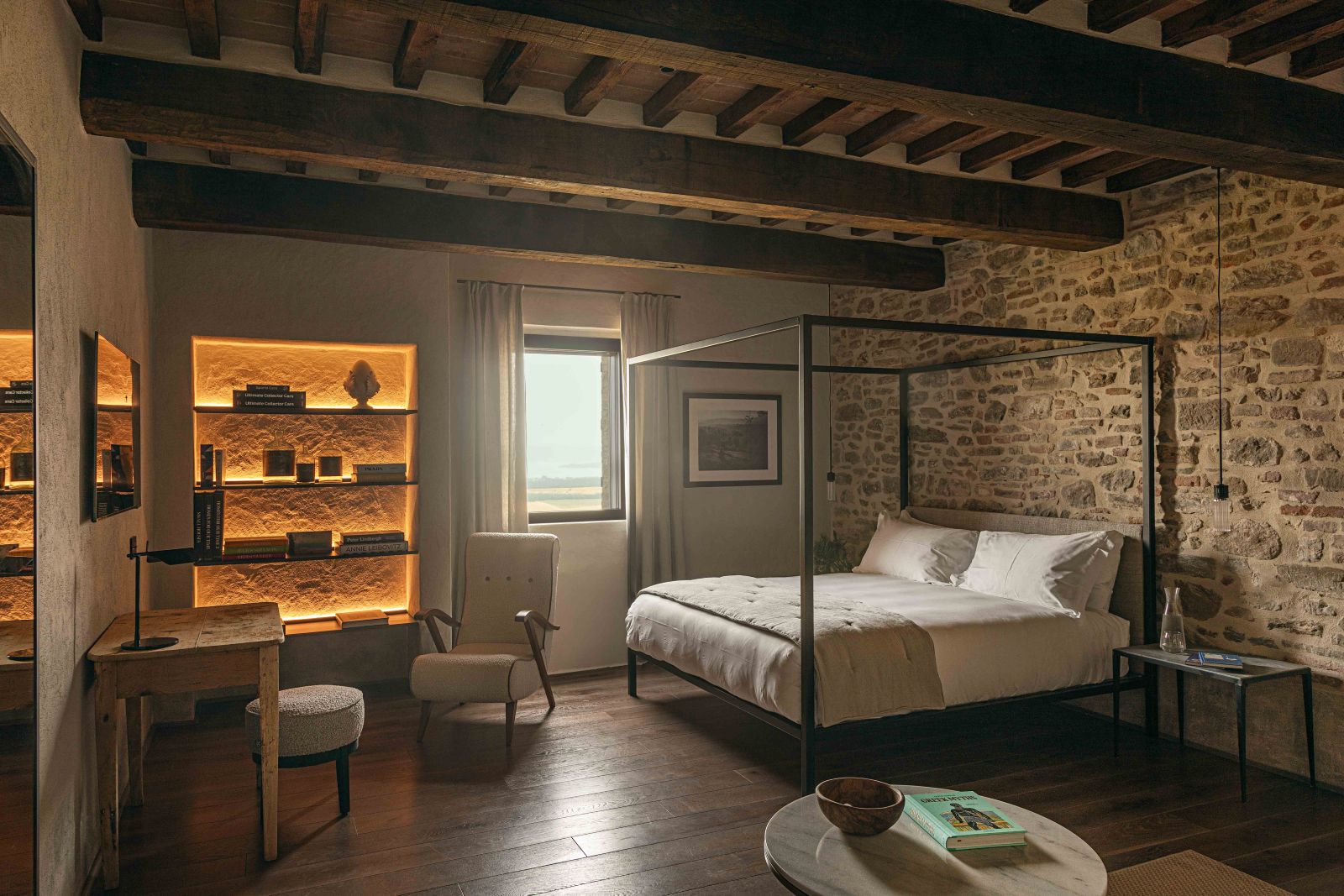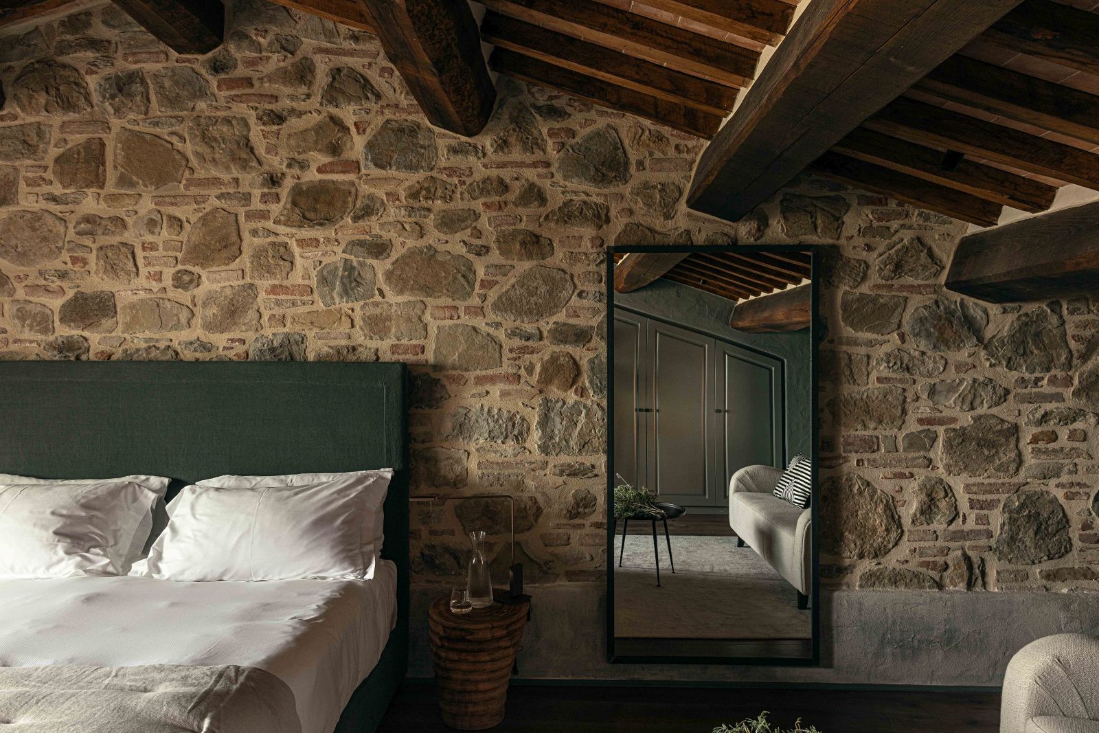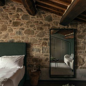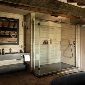 La realizzazione di suite uniche, diverse l’una dall’altra e personalizzate attraverso texture ricercate, pezzi di design iconici o arredi di modernariato, costituisce uno dei punti di forza di questa proprietà che un tempo fungeva da rifugio nobiliare.
