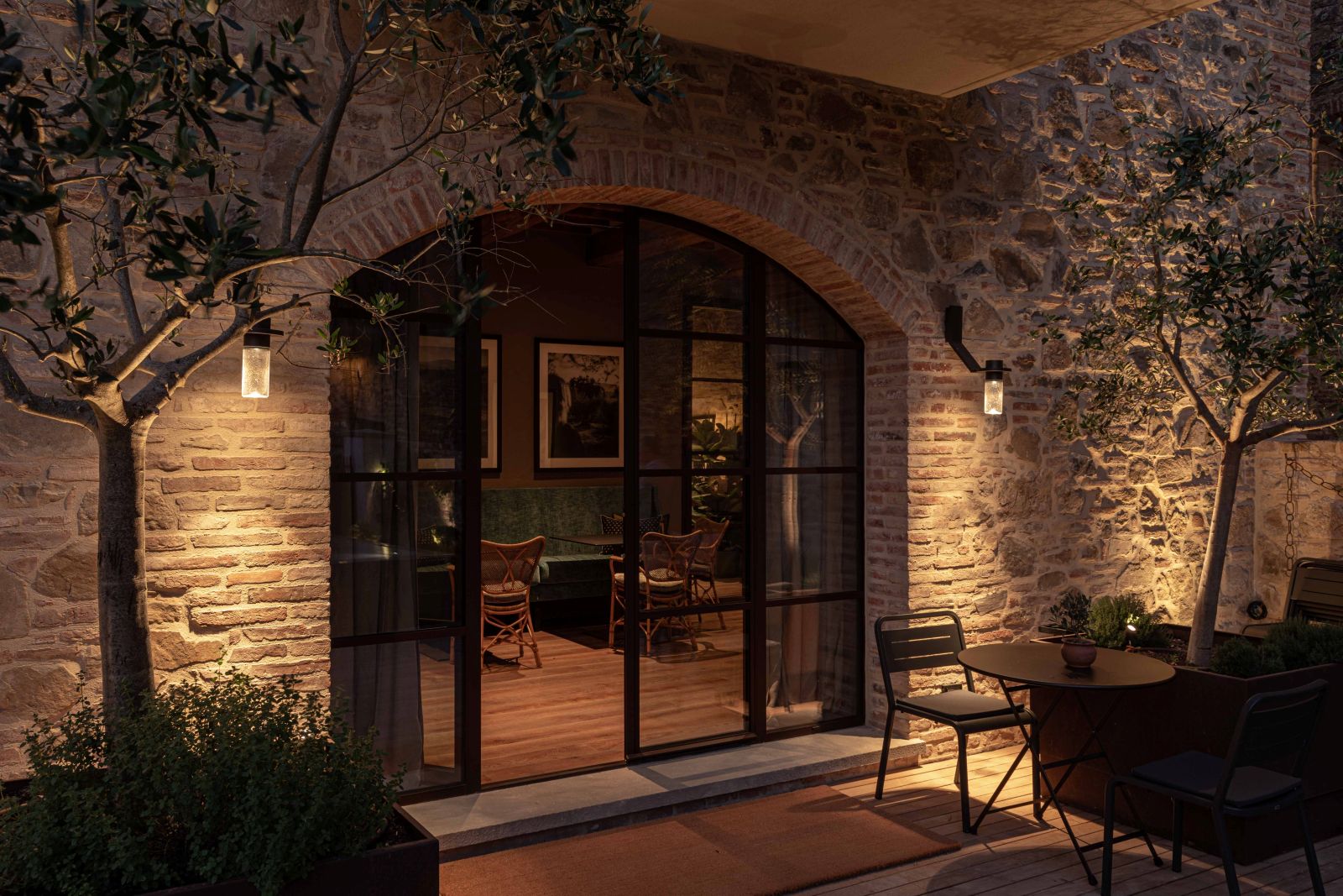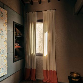 Al piano strada, sfruttando le antiche mura, è stato ricavato un bistrot che propone le specialità del territorio umbro. Qui, arredi che richiamano le tradizionali trattorie della zona, sono stati sapientemente rivisitati con materiali e forme capaci di evocare atmosfere locali autentiche. Inoltre, quasi nascosta, sospesa su una via silenziosa del borgo, è stata ricavata un’area dedicata allo yoga e alla meditazione per il benessere degli ospiti. L’attenzione al benessere ritorna poi nella spa di dimensioni raccolte, ma di grande impatto, e che occupa gli spazi che un tempo ospitavano le cantine per l’olio.