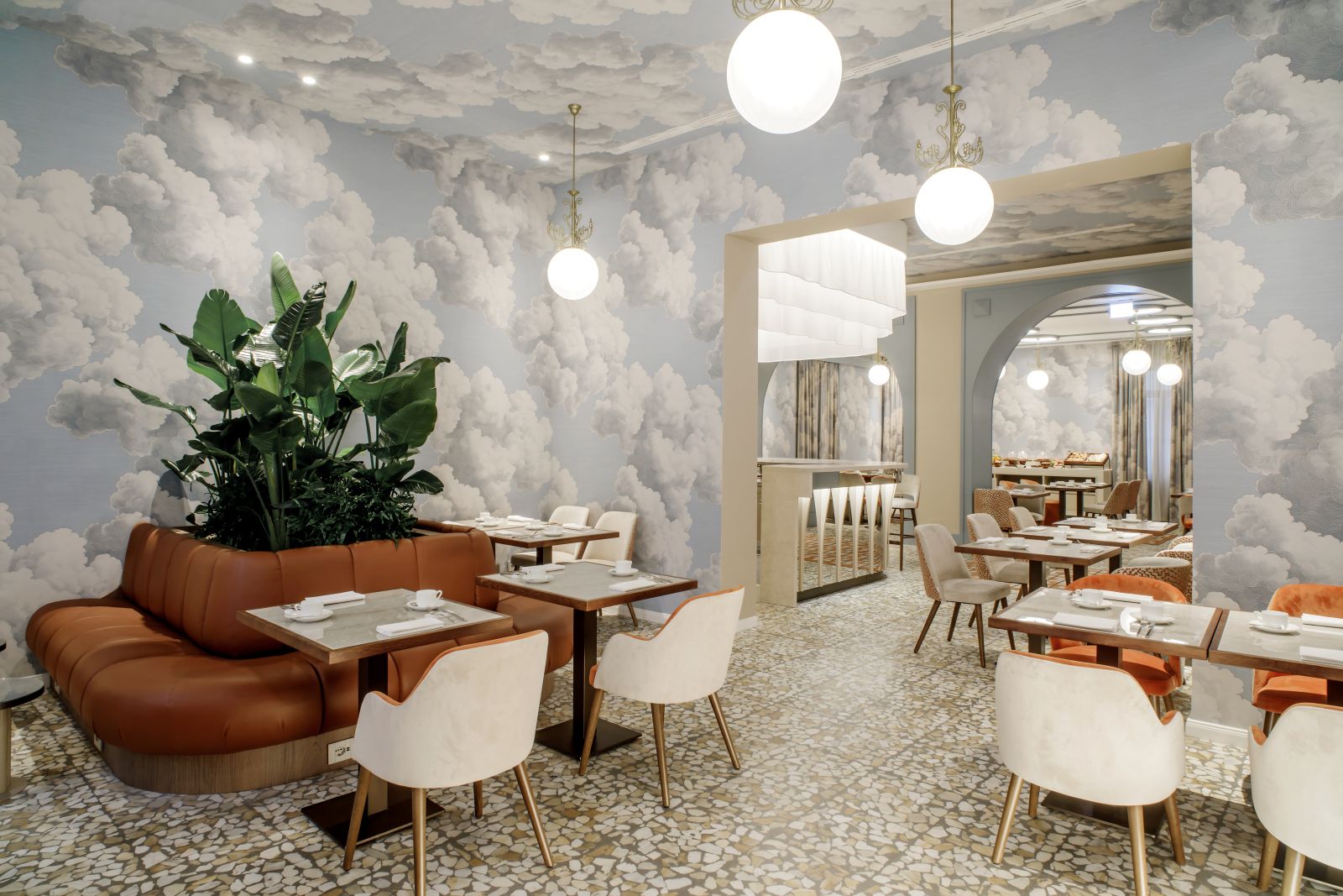 Gli spazi comuni sono stati ideati come ambienti di una dimora storica, accoglienti e avvolti dai colori dell’arte locale, e accolgono esperienze legate alle eccellenze regionali come il cioccolato, il cashmere e la ceramica. Tra gli ambienti distintivi spiccano il ristorante Casa Vannucci, con soffitti ad arco valorizzati da luci e colori e carte da parati Fornasetti, lo Spazio Cloud, il cui bancone bar è concepito come una nuvola sospesa, e il jazz club, progettato come uno speakeasy in stile proibizionismo, accessibile attraverso un corridoio nascosto dietro la reception.