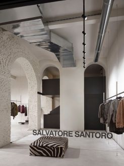 Inaugurato in occasione della Milano Fashion Week Uomo, il primo showroom direzionale di Salvatore Santoro segna un nuovo capitolo strategico per il brand partenopeo. Situato in via Marcona 3, lo spazio si sviluppa su due livelli ed è stato progettato dallo studio Parisotto + Formenton Architetti con l’obiettivo di creare un’esperienza immersiva dove architettura, luce e materia si fondono in un equilibrio sospeso nel tempo.