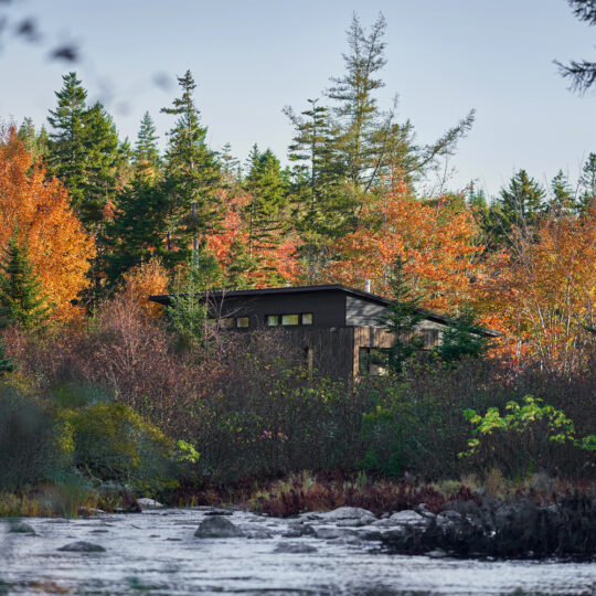 A dominare la costruzione è l’uso dell’abete canadese, reperibile localmente, e grande attenzione è stata prestata dagli architetti al flusso di luce naturale, utilizzata tra le altre cose per espandere lo spazio: in particolare, una grande sala si apre a est con una parete di finestre che si affaccia sul lago, inondando le zone pranzo e soggiorno di luce, soprattutto al mattino.