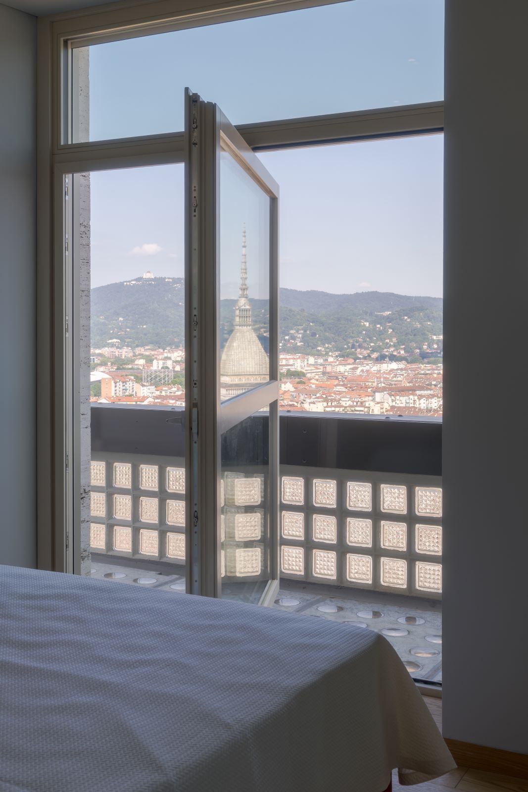 Il centro barocco di Torino in cui è collocata la Torre è il vero protagonista del suo progetto che valorizza l’affaccio a 360° sulla città e porta all’interno degli appartamenti il paesaggio attraverso l’utilizzo di superfici vetrate e riflettenti, moltiplicate dall’eliminazione delle pareti interne e l’apertura di una grande zona giorno open space.