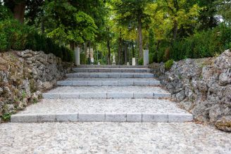La riconfigurazione degli spazi ha operato con discrezione: le pavimentazioni originali sono state restaurate e i percorsi in terra battuta integrati con inserti in calcestre per garantire una piena accessibilità universale, senza compromettere la coerenza del disegno storico.