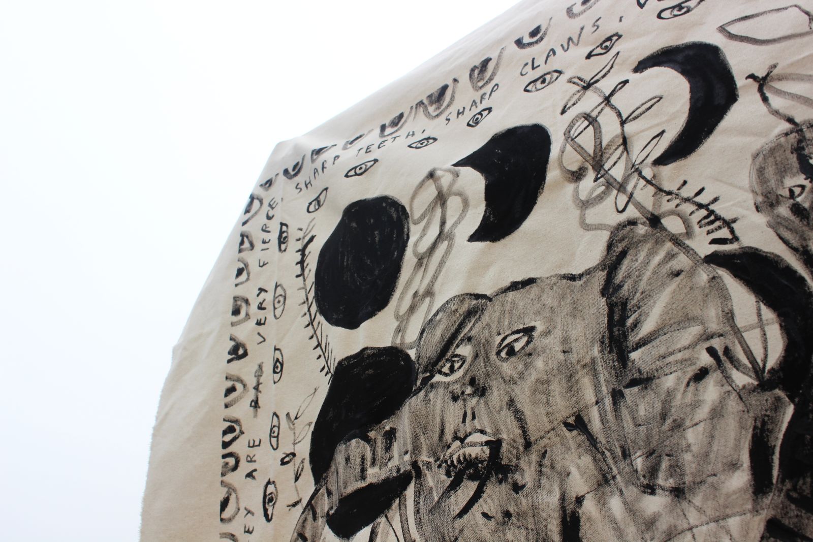 La mostra, liberamente ispirata al gioco surrealista del Cadavre Exquis (il cadavere squisito), mette in mostra corpi ibridi, creature indomite ed esseri onirici che sfidano ogni logica e tassonomia in scene dense, popolate da incontri orgiastici, uomini-uccello dai tratti ittiomorfi e formichieri a sei zampe. Queste figure si fondono e si moltiplicano annullando i confini tra specie, desiderio e fantasia. A completare i dipinti, le sculture in ceramica della Moorhouse portano questo serraglio surreale nella terza dimensione. Bestie multi-arto e forme totemiche sovrapposte riecheggiano la giocosa distorsione delle tele, creando un’estensione tattile del suo zoo immaginario.