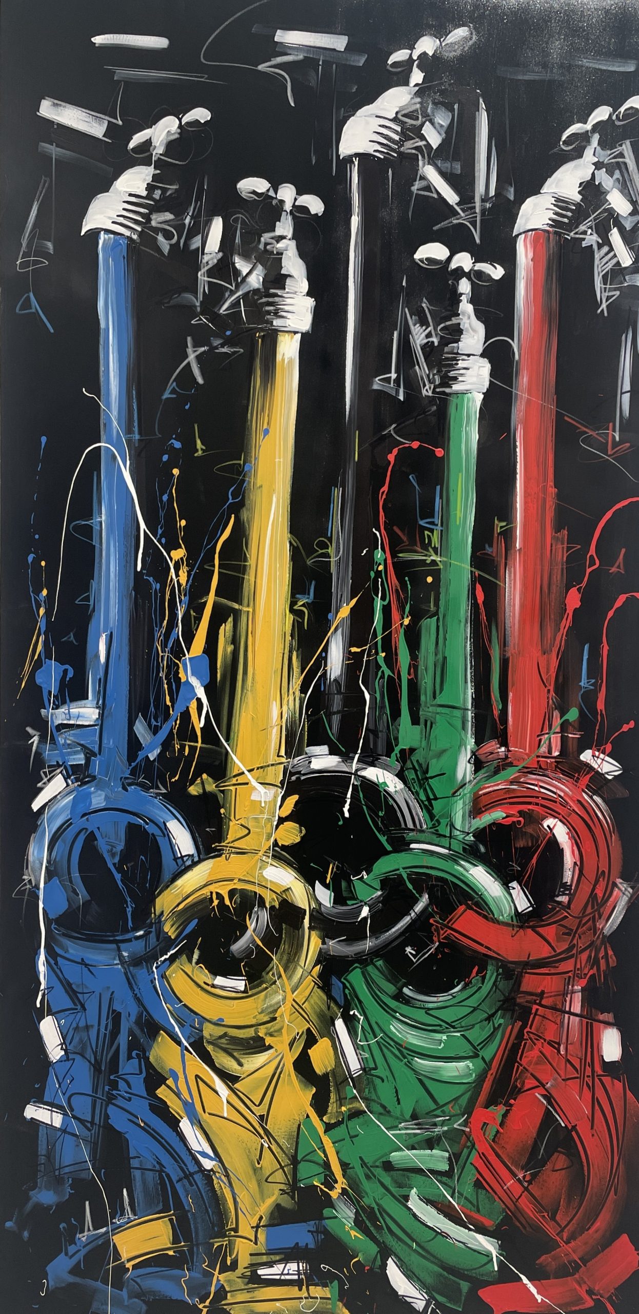 Questa rassegna rappresenta la naturale evoluzione di un percorso iniziato con Apri alla Vita, il maestoso murale realizzato dall’artista sulla facciata dell’Ospedale Niguarda. Quell’opera, divenuta simbolo dell’Olimpiade Culturale, utilizzava l’iconografia del rubinetto per trasformare flussi di colore nei leggendari cerchi olimpici, celebrando la vitalità come dono sociale e collettivo.