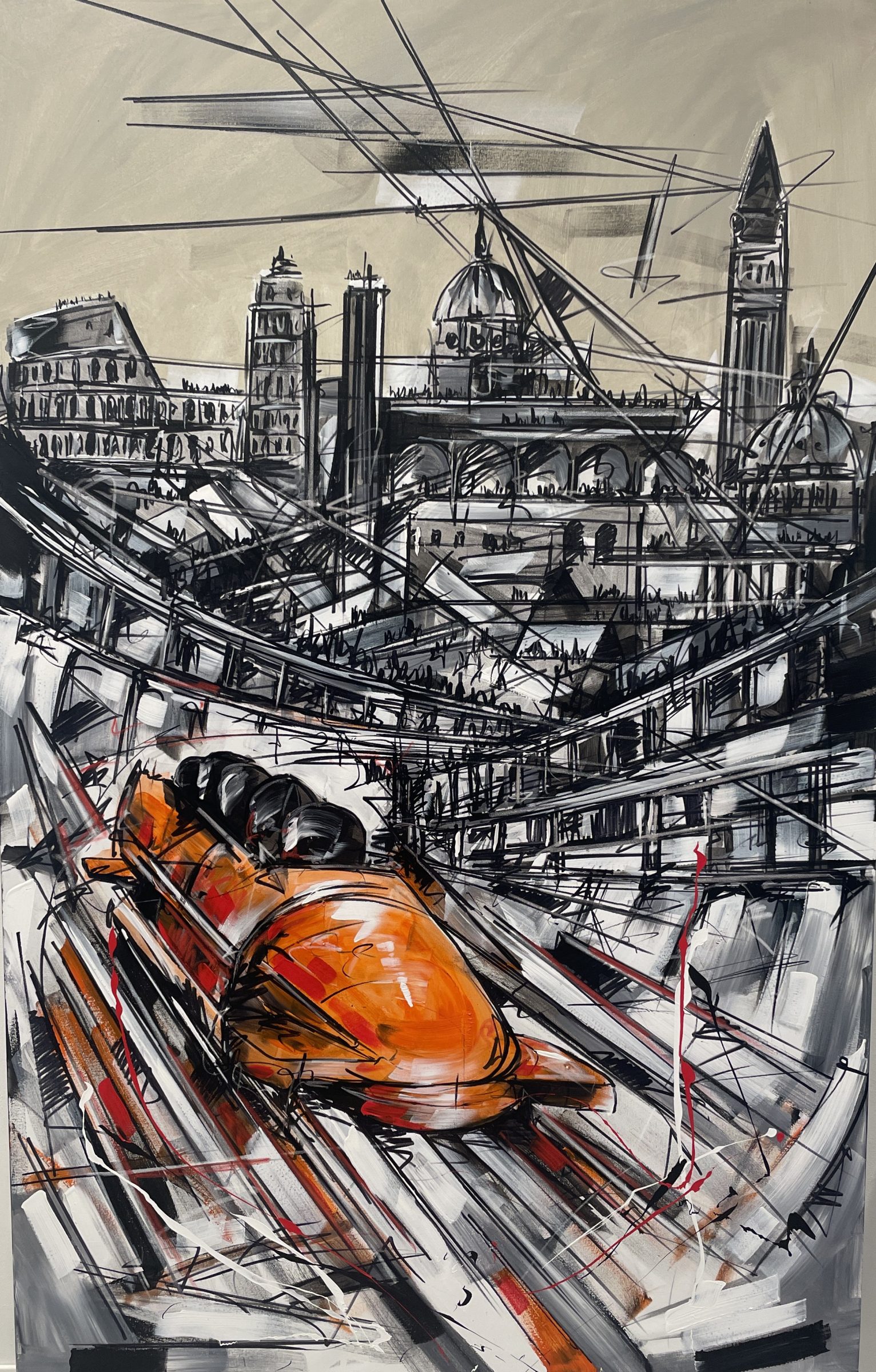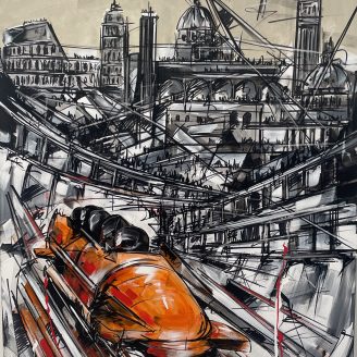 Prodotta in collaborazione con PPosh Milano, l’esposizione si sviluppa in simultanea presso la Fabbrica Eos Gallery di Milano e la Galleria Luigi Proietti di Cortina. Il cuore del progetto risiede in una serie di opere inedite dove le architetture urbane italiane e le discipline invernali si fondono nel caratteristico linguaggio di Tamburro: un mix vibrante di dinamismo e riflessione.