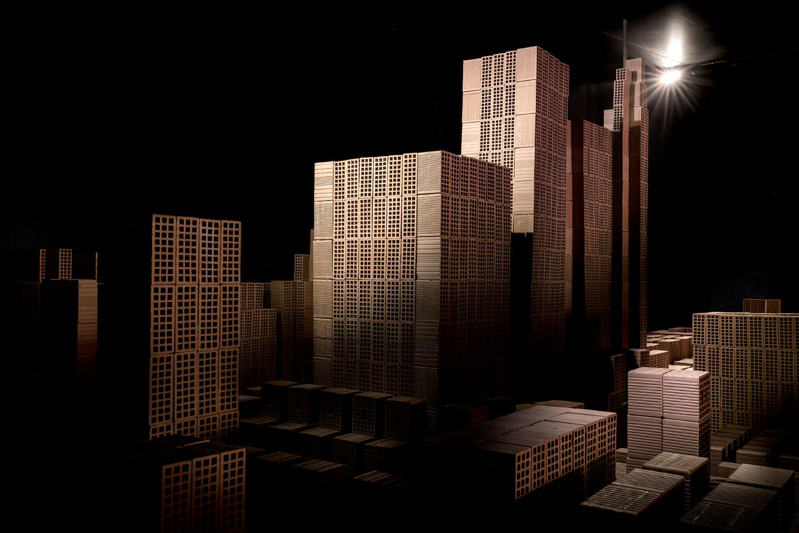 L’installazione diventa così uno spunto per riflettere sull’ecosistema urbano e sul nostro rapporto con esso attraverso lo skyline di una città immaginaria costituita da 6.000 laterizi forati realizzata da Matteo Mezzadri in concomitanza con un’analoga opera presentata alla Biennale di Venezia 2022, così da creare rimandi spaziali e temporali in due città chiave per l’arte e il turismo del nostro Paese.