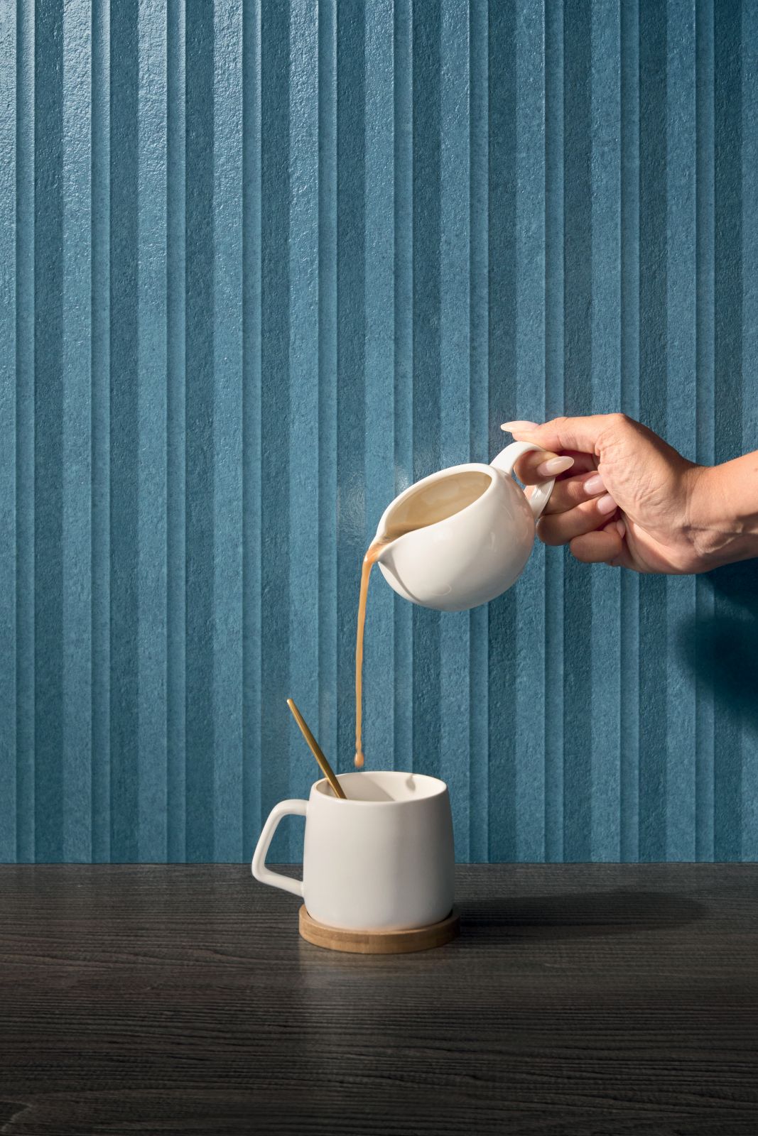 Miniature Rima arricchisce i rivestimenti in piccolo formato (mini brick 6×24 cm) con elementi tridimensionali. La collezione presenta una originale struttura 3D con doppia scanalatura che lavora intensamente sul ritmo. L’effetto visivo è animato dal contrasto tra la brillantezza dell’incavo e l’effetto matt dei bordi rialzati, generando riflessi che mutano con l’incidenza della luce, amplificando l’effetto di profondità. Sono disponibili dieci colori, vividi e saturi, tra cui Tartufo, Piuma e Indigo.