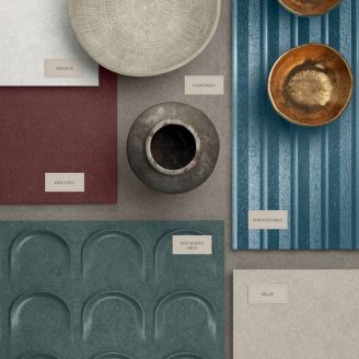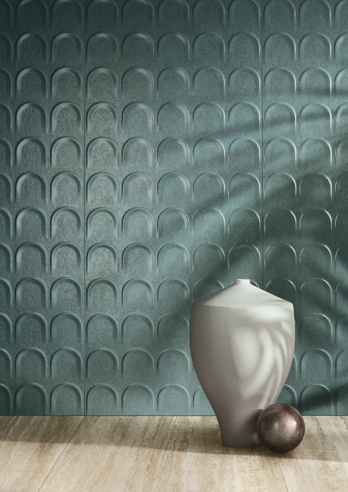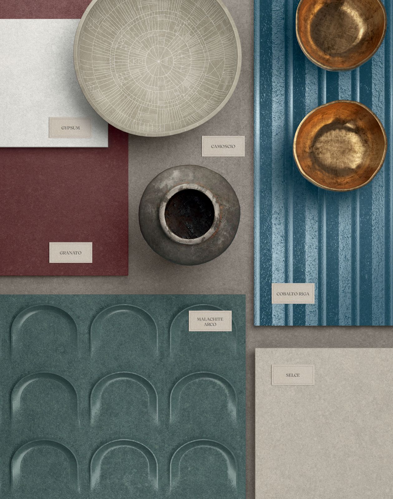 Con un rimando a ciò che proviene da zone lontane, caratterizzato da un velo di stravaganza e originalità, la storica azienda di Sassuolo ha immaginato una wunderkammer di superfici ad alta intensità, visiva e materica.