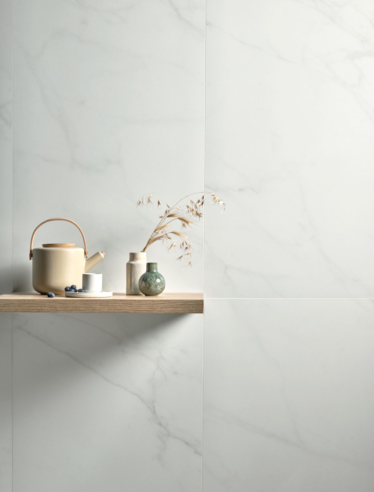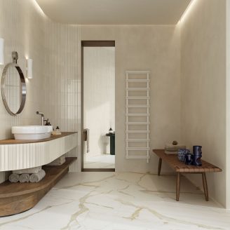Scultorea delicata rappresenta una nuova tappa nella ricerca sull’effetto marmo, concentrandosi su marmi chiari e ispirazioni insolite, come il Taj Mahal Cristallo. I grandi formati (120×278 cm) debuttano in questa linea con la finitura Velvet, che risulta matt e vellutata al tatto.