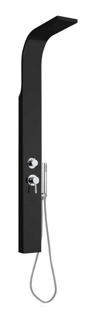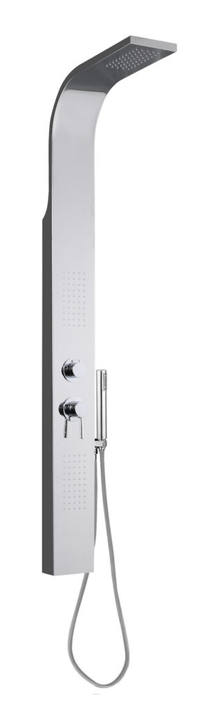 Infine, il tocco di classe: per un piacevole contrasto di toni, il miscelatore e deviatore incorporati sono volutamente proposti in acciaio inossidabile in finitura lucida anche nelle due varianti colore del pannello doccia.
