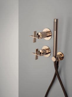 Realizzata interamente in ottone, la gamma è declinata in ben undici varianti cromatiche: oltre all’inedito Rame antico, sono disponibili finiture come Oro Rosa, Bronzo satinato, Cromo nero spazzolato e Nero opaco. La collezione offre inoltre una doppia soluzione funzionale: la sintesi immediata del miscelatore monocomando o la ritualità della versione tradizionale con maniglie separate.